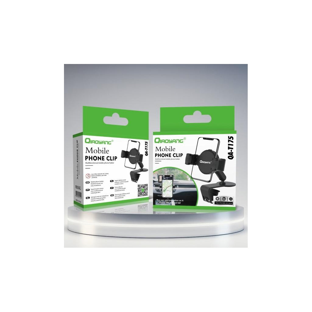 Suporte de Telemóvel Multifuncional QA-T175 – Condução Segura e PráticaO Suporte de Telemóvel QA-T175 é a solução ideal para manter o seu telemóvel acessível e seguro enquanto conduz. Com um design compacto e multifuncional, este suporte garante uma condução segura, permitindo-lhe seguir facilmente a navegação GPS ou atender chamadas em modo mãos-livres.Características Principais:Fixação Segura:Suporte robusto que mantém o telemóvel firmemente no lugar, mesmo em estradas irregulares.Rotação de 360º:Ajuste o ângulo do telemóvel para uma visualização ideal e confortável.Instalação Fácil:Compatível com a maioria das grades de ventilação dos veículos.Design Universal:Suporta telemóveis de diversos tamanhos, graças ao seu sistema de mola ajustável.Acabamento Antiderrapante:Protege o telemóvel contra arranhões e deslizamentos.Vantagens:Permite uma condução segura e mãos-livres.Compacto e portátil, fácil de remover e instalar em outros veículos.Material resistente e duradouro, ideal para uso diário.Especificações Técnicas:Modelo:QA-T175Material:ABS de alta qualidadeCompatibilidade:Telemóveis de 4,5 a 6,5 polegadasRotação:360ºCor:Preto
