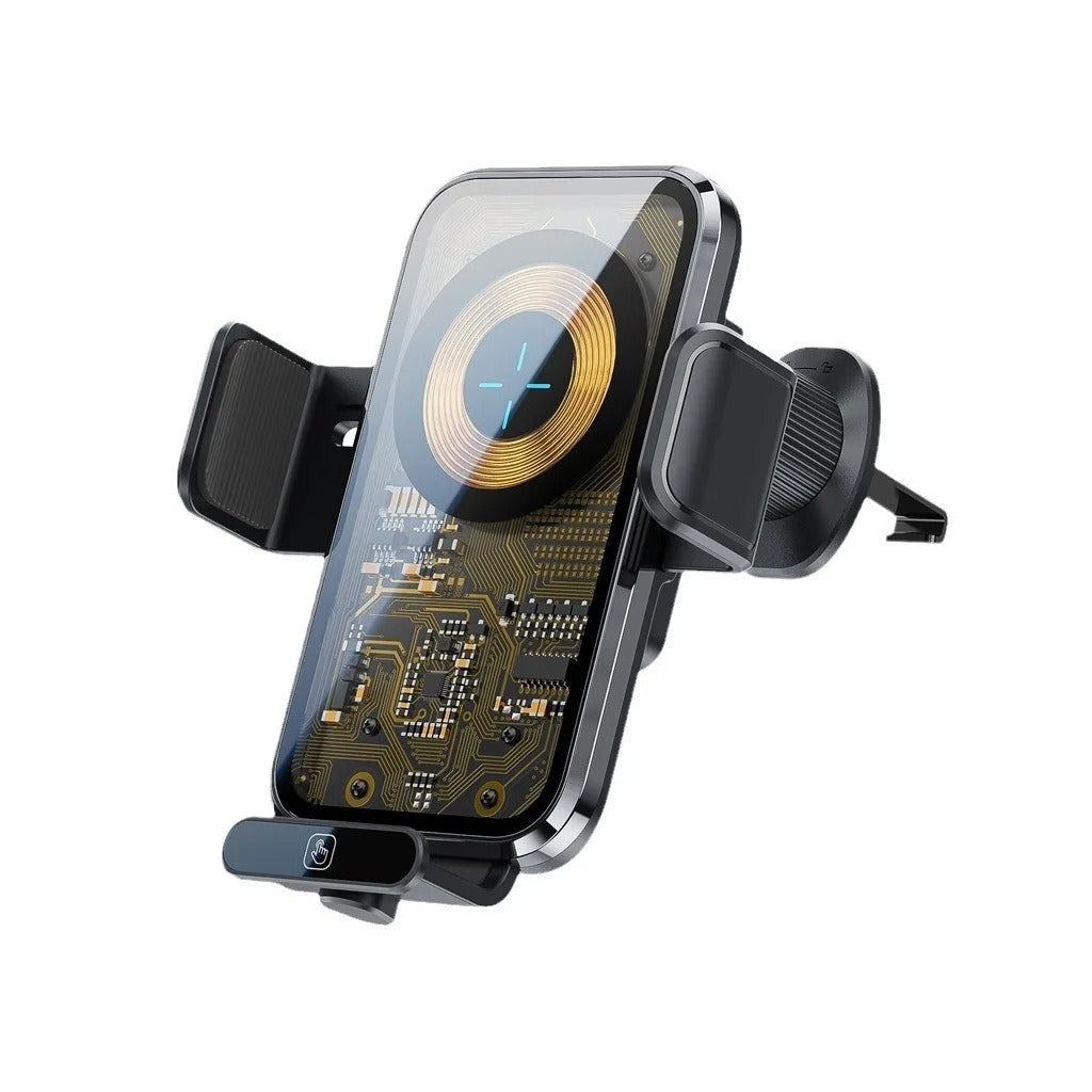 Suporte Automóvel com Carregamento Wireless RápidoFacilite as suas viagens com o suporte automóvel com carregamento wireless integrado. Ideal para manter o telemóvel seguro enquanto conduz, permite carregar o dispositivo sem cabos desnecessários, garantindo praticidade e eficiência.CaracterísticasCarregamento wireless rápido: Suporta até 15W para um carregamento eficiente.Fixação segura: Sistema de encaixe automático que mantém o telemóvel estável.Design ajustável: Compatível com telemóveis de vários tamanhos e fácil de ajustar a qualquer posição.Instalação prática: Encaixe para ventilação, garantindo estabilidade durante a condução.Proteção integrada: Sistema contra sobrecargas e aquecimento excessivo para maior segurança.