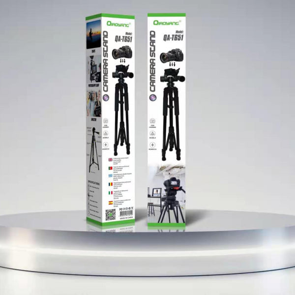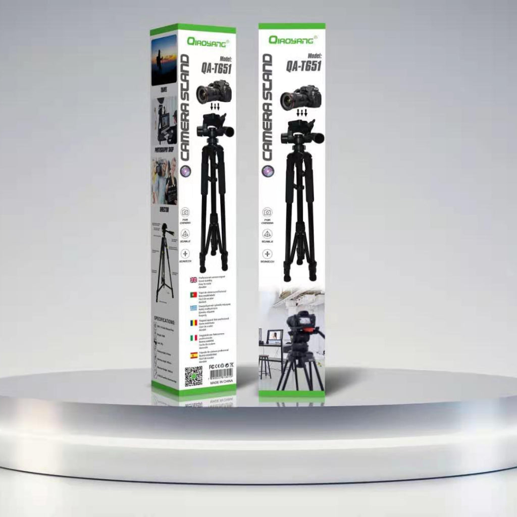 Tripé Profissional QA-T651 – Suporte Perfeito para Capturas IncríveisO Tripé QA-T651 é ideal para fotógrafos e videógrafos que desejam elevar a qualidade das suas capturas. Projetado com uma estrutura robusta e funções avançadas, este tripé garante estabilidade e flexibilidade para qualquer projeto.Características Principais:Altura Ajustável:Alcance até 150 cm para capturas em diferentes ângulos e alturas.Cabeça Rotativa em 360°:Proporciona liberdade total para explorar todas as perspetivas.Design Dobrável e Portátil:Fácil de transportar e armazenar, perfeito para uso em estúdio ou em exteriores.Material de Qualidade:Construção em liga de alumínio para durabilidade e leveza.Compatibilidade Universal:Suporta câmaras DSLR, mirrorless e até smartphones com adaptadores.Benefícios:Estabilidade Excepcional:Pés antiderrapantes garantem segurança em qualquer superfície.Resultados Profissionais:Ideal para fotografia, gravações, vlogs e transmissões ao vivo.Fácil de Montar:Sistema intuitivo que permite ajustes rápidos e eficientes.Especificações Técnicas:Modelo:QA-T651Altura Máxima:150 cmMaterial:Liga de alumínioPeso Suportado:Até 5 kgInclinação Vertical:Até 90°Compatibilidade:Universal para câmaras e smartphones