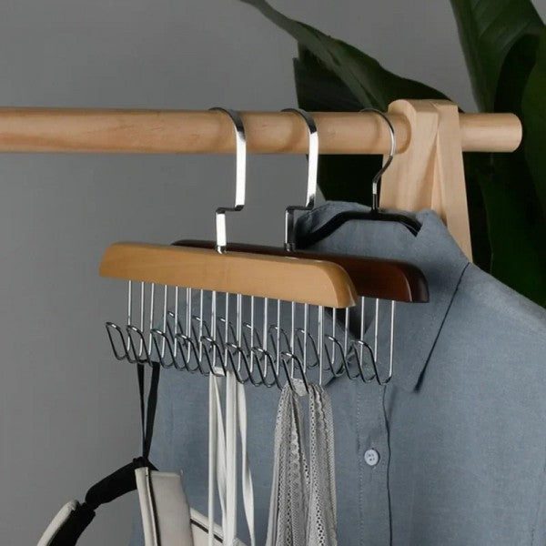 Cabide Multifuncional para Roupeiro e Acessórios – Organização InteligenteMantenha suas roupas, laços e outros acessórios organizados com este cabide multifuncional. Com design compacto e elegante, proporciona praticidade e economia de espaço no seu guarda-roupa, permitindo que você visualize e acesse seus itens com facilidade.Características✔Design Funcional: Suporta múltiplos acessórios em um único cabide, mantendo tudo organizado e ao alcance.✔Material Durável: Feito de madeira e aço inoxidável, garantindo resistência e durabilidade.✔Economia de Espaço: Ideal para armários pequenos, maximizando o uso do espaço disponível.✔Versatilidade: Perfeito para gravatas, cintos, lenços, laços e outros acessórios.✔Rotação de 360°: Gancho giratório que facilita o acesso e organização dos itens.✔Estilo Elegante: Acabamento em madeira natural, combinando com qualquer guarda-roupa ou decoração.EspecificaçõesMaterial: Madeira e aço inoxidávelCapacidade: Até 10 acessórios por cabideDimensões: Compacto e leveUso: Gravatas, cintos, lenços, laços e acessórios similares
