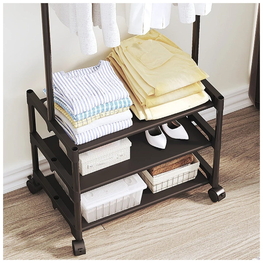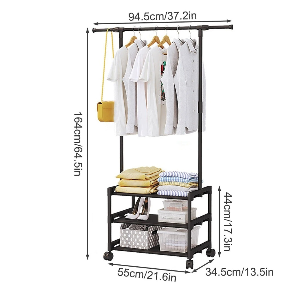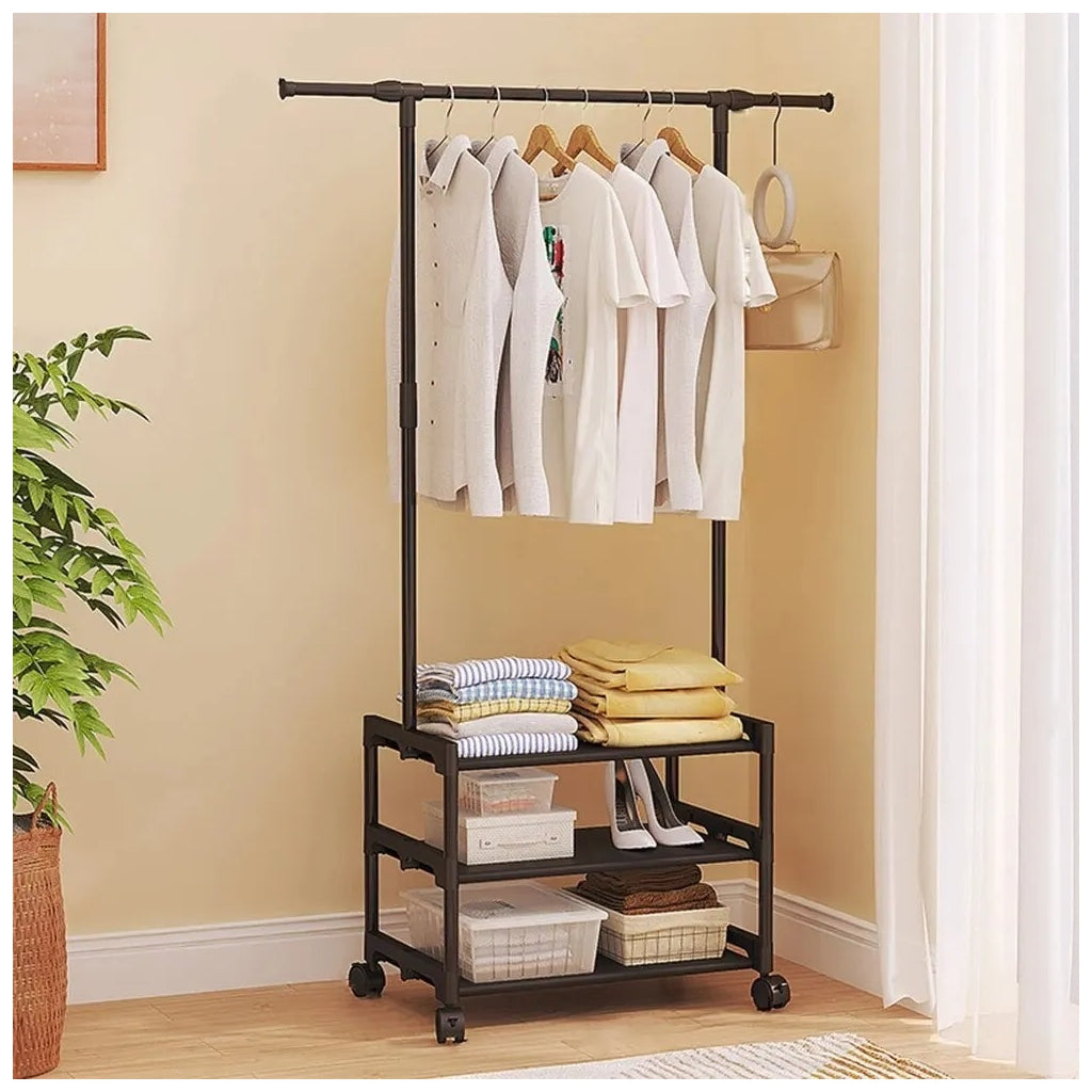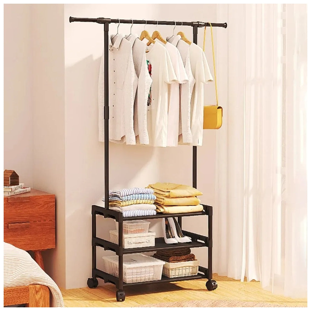 Cabide Organizador com Rodas e Prateleiras AjustáveisEste cabide organizador é a solução ideal para maximizar o espaço e manter roupas e acessórios sempre organizados. Com varão para pendurar roupas, duas prateleiras inferiores para sapatos ou caixas e rodas para fácil movimentação, é perfeito para quartos, lavandarias ou entradas. Compacto e funcional, adapta-se a diferentes necessidades e espaços.Características:Varão para roupas: Ideal para pendurar casacos, camisas e vestidos de forma prática.Prateleiras espaçosas: Duas prateleiras inferiores perfeitas para organizar sapatos, caixas ou toalhas.Rodas giratórias: Permite movimentar o cabide facilmente, garantindo flexibilidade no uso.Estrutura robusta: Fabricada com materiais resistentes para maior durabilidade.Dimensões compactas: Com 94,5 cm de largura, 55 cm de profundidade e 164 cm de altura, encaixa-se perfeitamente em espaços pequenos.Design moderno e minimalista: Combina funcionalidade e estilo para complementar qualquer ambiente.Fácil de montar: Inclui peças e instruções para uma montagem rápida e descomplicada.