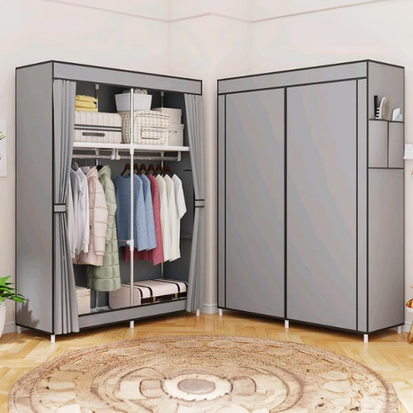 Guarda-Roupa Portátil com Cortinas e Estrutura de Armazenamento ModularOrganize as suas roupas e acessórios com praticidade e estilo utilizando este guarda-roupa portátil. Com um design moderno e funcional, inclui varões para pendurar roupas, prateleiras espaçosas para armazenamento adicional e cortinas de fechamento para proteger os itens do pó. Compacto e leve, é perfeito para quartos, apartamentos ou espaços temporários.Características:Varões para roupas: Ideais para pendurar casacos, camisas e vestidos sem amassar.Prateleiras amplas: Oferecem espaço adicional para organizar malas, toalhas, caixas e roupas dobradas.Cortinas com fecho prático: Protege as roupas do pó, mantendo tudo limpo e organizado.Estrutura leve e resistente: Fabricada em materiais duráveis para garantir estabilidade e fácil transporte.Design modular e versátil: Perfeito para diferentes necessidades de organização em quartos, escritórios ou lavandarias.Montagem fácil: Inclui todas as peças necessárias para uma montagem rápida e prática.Dimensões compactas: Ideal para aproveitar ao máximo pequenos espaços sem comprometer a funcionalidade.