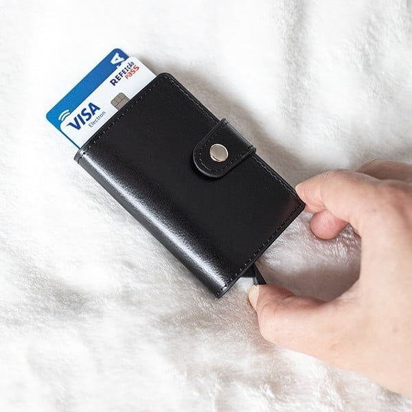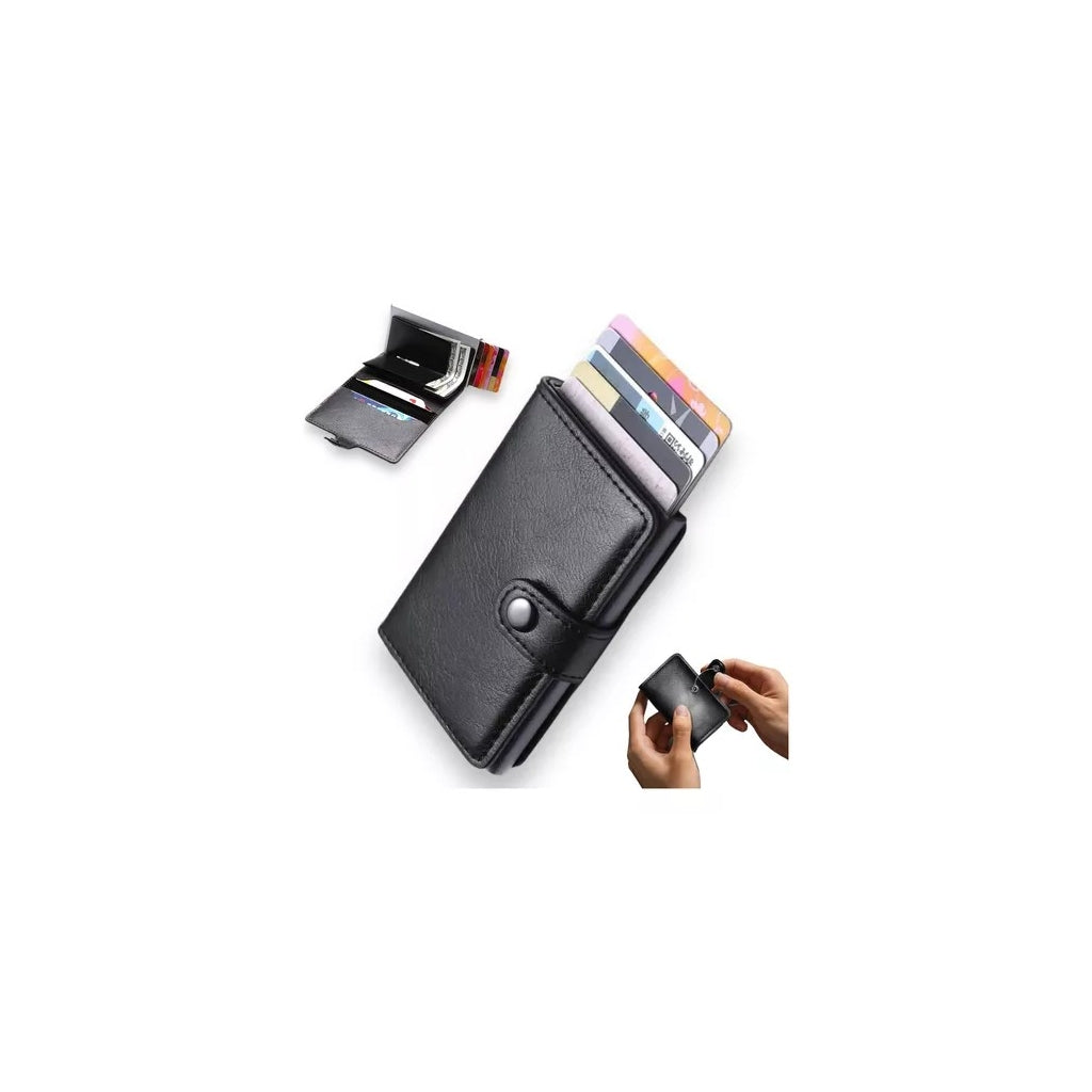 Porta-Cartões Compacto com Sistema Antirroubo – Elegância e SegurançaEste Porta-Cartões Compacto é a solução perfeita para quem procura praticidade, segurança e estilo. Com um design moderno e sofisticado, oferece proteção avançada contra clonagem de cartões, mantendo as tuas informações seguras.Características principais:Proteção RFID: Sistema antirroubo que bloqueia sinais indesejados, garantindo a segurança dos teus cartões.Sistema de Ejeção Inteligente: Acesso rápido e prático aos teus cartões com um simples toque.Material Resistente: Fabricado em couro sintético de alta qualidade, garantindo durabilidade e um toque elegante.Design Compacto e Minimalista: Cabe facilmente no bolso, ideal para o dia a dia ou viagens.Capacidade Ideal: Armazena até 6 cartões, além de compartimento extra para notas.Especificações técnicas:Dimensões: 10 cm x 7 cm x 2 cmMaterial: Couro sintético e alumínio internoCor: Disponível em preto clássicoCapacidade: Até 6 cartões + espaço para notas
