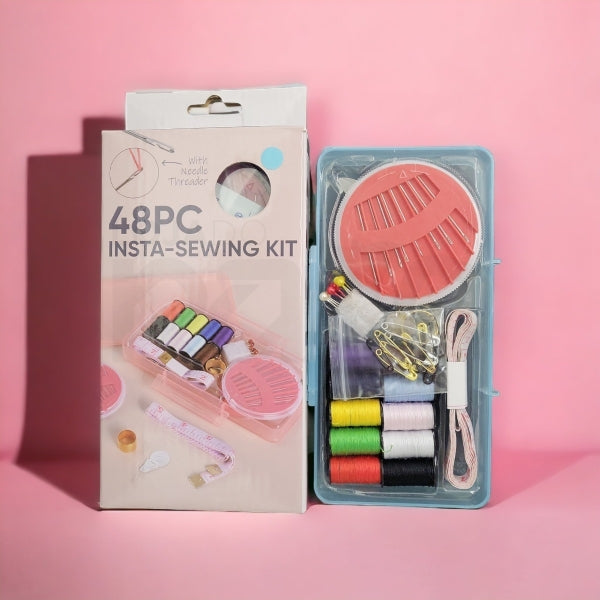 Kit de Costura Portátil de 48 Peças - Prático e CompactoIdeal para pequenos arranjos em casa ou em viagem, este kit oferece todas as ferramentas essenciais organizadas numa caixa transparente para fácil acesso. Leve e compacto, é perfeito para ter sempre à mão.Características:Dimensões:16,6 cm x 8,8 cm x 2,3 cmCor:AzulMaterial:PP, PS e AlgodãoOrganização Transparente:Caixa prática para manter todos os itens organizados e visíveis.Ampla Variedade de Cores:Linhas em diferentes tonalidades para combinar com qualquer tecido.Inclui:8 x Agulhas1 x Tesoura2 x Toalhitas de Álcool1 x Fita Métrica1 x Enfiador de Agulha12 x Alfinetes de Marcação1 x Dedal12 x Alfinetes de Segurança10 x Carrinhos de Linha (100% algodão)