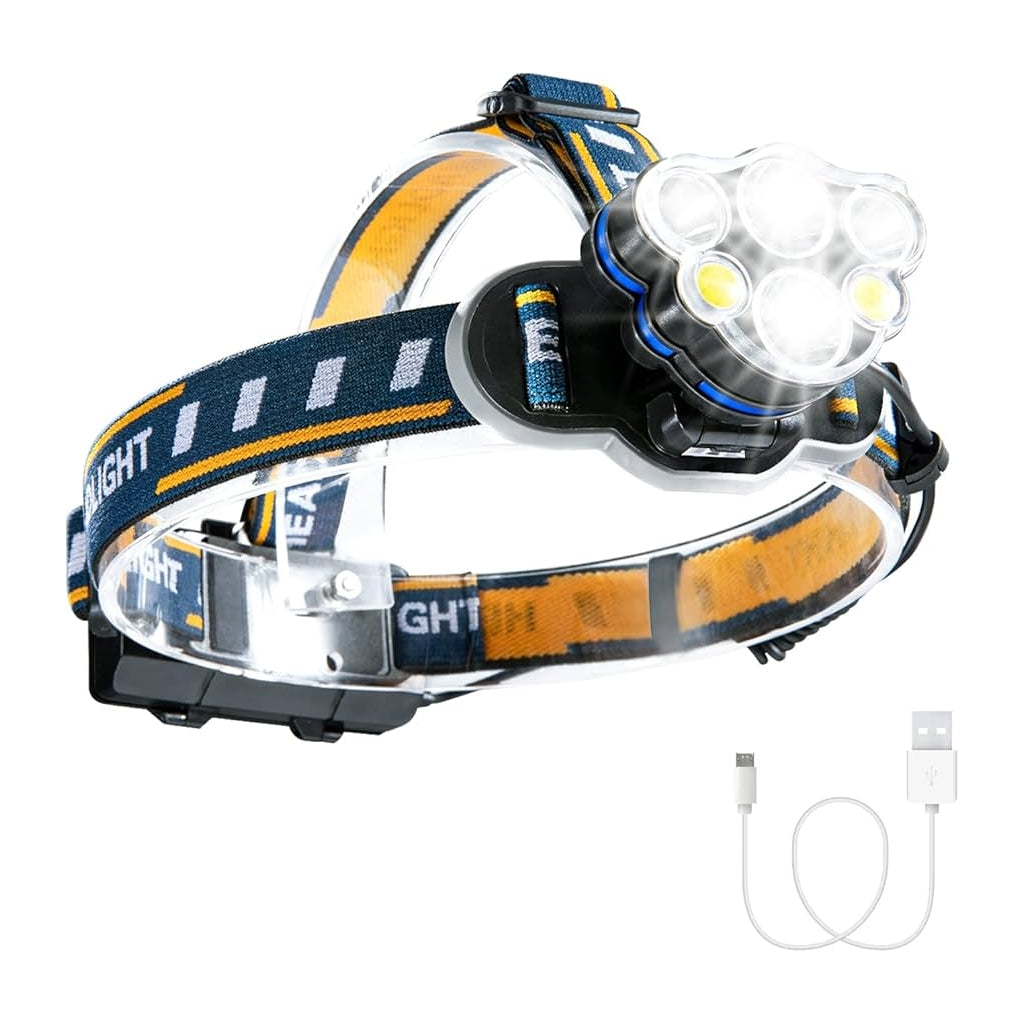 Lanterna Frontal LED Recarregável com Ajuste de IntensidadePerfeita para actividades ao ar livre, a lanterna frontal LED recarregável oferece uma iluminação poderosa e versátil. Seja para caminhadas noturnas, acampamentos ou trabalho em locais escuros, esta lanterna combina conforto e eficiência.Vantagens do ProdutoIluminação Ultra Brilhante: Equipado com LEDs de alta potência para máxima visibilidade.Ajuste de Intensidade: Diferentes modos de luz para adaptar-se a várias situações.Conforto e Ajustabilidade: Fita elástica ajustável para um encaixe perfeito.Resistência à Água: Ideal para todas as condições climáticas.Bateria Recarregável: Inclui cabo USB para carregamento fácil e rápido.Especificações TécnicasMaterial: Plástico ABS e liga de alumínio.Fonte de Luz: LEDs de alta intensidade.Modos de Iluminação: Alto, médio, baixo, e piscar.Alimentação: Bateria recarregável (incluída).Peso: Leve e portátil.Cor: Preto com detalhes em laranja.