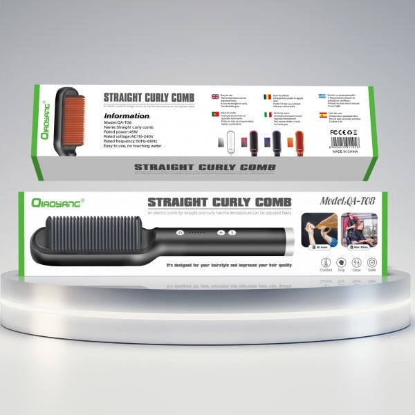 Escova Alisadora e Modeladora Qiaoyang QA-T08 – Versatilidade e Elegância para o CabeloA escova elétrica Qiaoyang QA-T08 é o acessório perfeito para alisar ou modelar o cabelo com rapidez e eficiência. Com um design moderno e funcional, é ideal para utilizar em casa ou em salões, garantindo sempre um resultado impecável.Características Principais:2 em 1:Alisa e modela, adaptando-se a diferentes estilos de cabelo.Temperatura Ajustável:Permite escolher a intensidade ideal para cada tipo de cabelo.Ergonomia e Segurança:Cabo antideslizante e isolamento térmico para uma utilização segura.Aquecimento Rápido:Pronta para uso em poucos segundos.Benefícios:Cabelos Suaves e Brilhantes:Tecnologia avançada que melhora a textura e a aparência do cabelo.Facilidade de Uso:Design leve e prático, ideal para manusear com uma só mão.Portátil e Compacta:Perfeita para levar em viagens ou no dia a dia.Economia de Tempo:Resultados rápidos e duradouros.Especificações Técnicas:Modelo:QA-T08Potência:45WVoltagem:AC 110-240VTemperatura Máxima:220°CCores Disponíveis:Preto, Vermelho, Branco, RoxoInclui:Escova alisadora, cabo de alimentação e manual de instruções