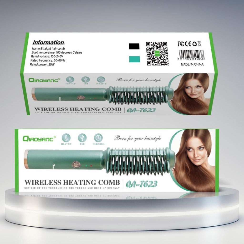 Escova Aquecida Sem Fios QA-T623 – Estilo Rápido e PráticoMantenha o seu cabelo sempre impecável com a escova aquecida sem fios QA-T623. Ideal para alisar ou modelar rapidamente, com tecnologia moderna e sem a necessidade de fios, é perfeita para quem procura praticidade e estilo em qualquer lugar.Características Principais:Aquecimento Rápido:Atinge 180ºC em poucos segundos, garantindo resultados rápidos.Sem Fios:Liberdade total de movimentos para um uso mais prático.Carregamento USB:Conveniente e compatível com carregadores portáteis ou adaptadores USB.Material Durável:Construída com materiais de alta qualidade para maior durabilidade.Benefícios:Portabilidade Extrema:Leve e compacta, cabe facilmente na mala ou mochila.Fácil de Usar:Perfeita para retoques rápidos, seja em casa ou em viagem.Proteção do Cabelo:Aquecimento uniforme que preserva a saúde dos fios.Versatilidade:Adequada para todos os tipos de cabelo.Especificações Técnicas:Modelo:QA-T623Temperatura Máxima:180ºCPotência:25WVoltagem:100-240VFrequência:50-60Hz
