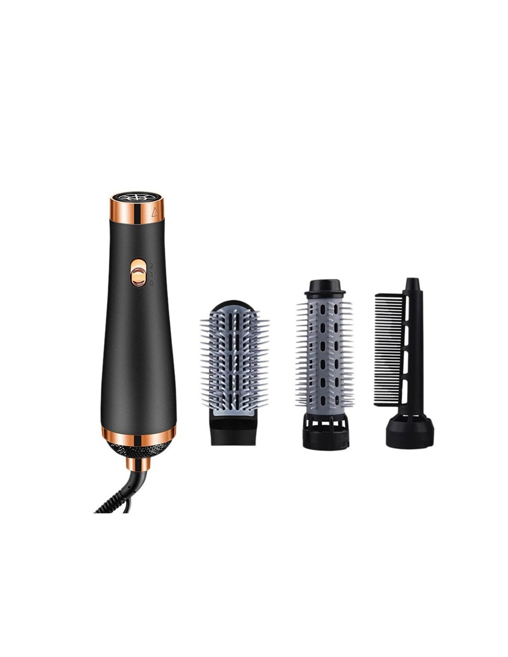 Escova Modeladora Multifunções 4 em 1Transforma o teu cabelo com a Escova Modeladora Multifunções 4 em 1, perfeita para criar penteados rápidos e elegantes em minutos. Com tecnologia avançada, este dispositivo oferece versatilidade para alisar, enrolar, modelar e dar volume ao cabelo, sem comprometer a saúde dos fios.Vantagens do Produto:4 Cabeças Intercambiáveis:Inclui acessórios para alisar, modelar e dar volume, adaptando-se a todas as tuas necessidades.Temperatura Ajustável:Ajusta a temperatura para proteger o cabelo e obter o resultado desejado.Design Ergonómico:Cabo giratório de 360° para fácil manuseamento e conforto.Compacta e Portátil:Ideal para levar em viagens ou usar no dia a dia.Cabelos Perfeitos em Minutos:Reduz o tempo necessário para arranjar o cabelo com resultados profissionais.Características Técnicas:Material: Plástico ABS e componentes metálicos de alta qualidadePotência: 1000WVoltagem: 220V-240VTemperatura: 2 níveis ajustáveisCabo: Rotativo 360°Cor: Preto com detalhes em douradoDimensões: 24 cm x 8 cm x 5 cmInclui:1 x Escova Modeladora Multifunções4 x Cabeças Intercambiáveis1 x Manual de Instruções