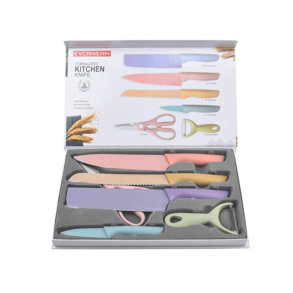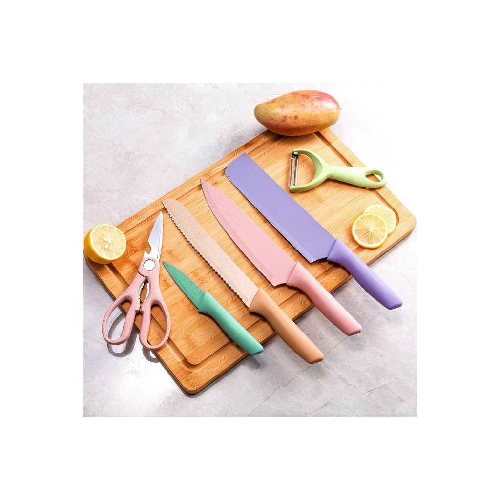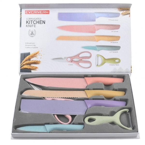 Conjunto de Facas de Cozinha 6 em 1 – Estilo Moderno e MulticoloridoEste conjunto de facas de cozinha foi projetado para oferecer funcionalidade, resistência e um design atrativo. Com uma combinação de lâminas afiadas em aço inoxidável e cores pastel suaves, este kit é ideal para cozinhas modernas.Características Principais:6 peças completas:Inclui 4 facas, tesoura de cozinha multifuncional e descascador cerâmico.Lâminas de aço inoxidável de alta qualidade:Garantem durabilidade e precisão no corte.Design ergonómico:Os cabos oferecem uma pega confortável e segura, mesmo durante longas utilizações.Acabamento em cores pastel:Uma mistura harmoniosa de estilo e funcionalidade para dar um toque especial à sua cozinha.Fácil de limpar e resistente a manchas:Perfeito para quem procura praticidade no dia a dia.