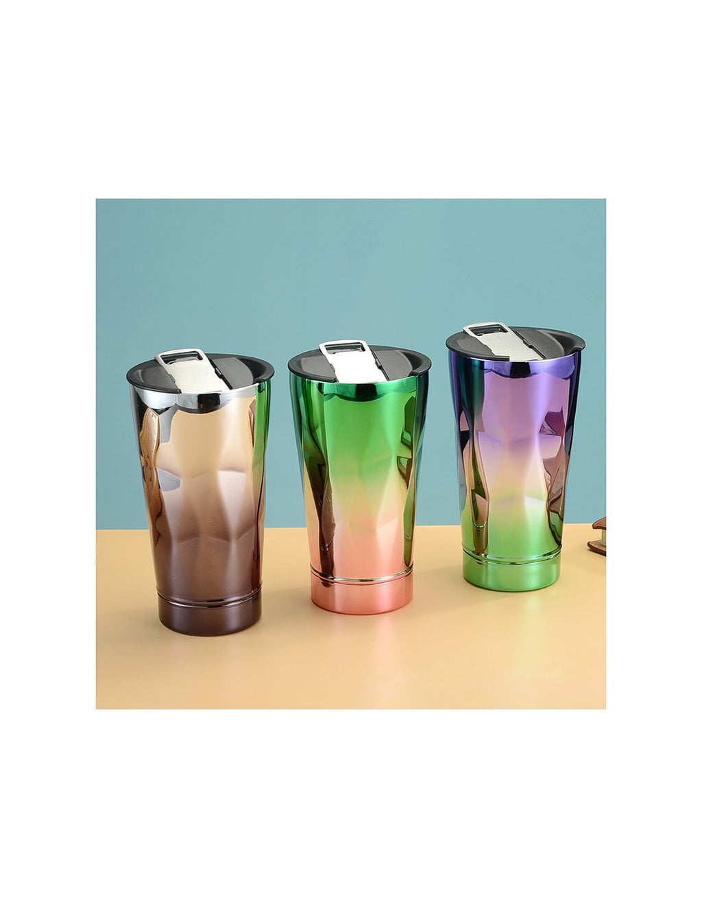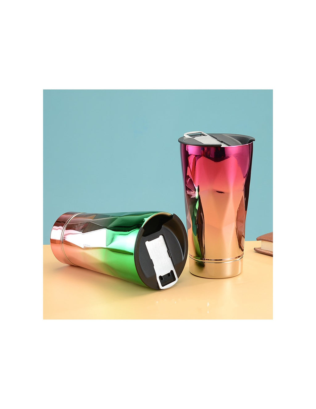 Copo Térmico com Design Metalizado e Tampa ReutilizávelEste copo térmico destaca-se pelo seu design inovador e acabamento metalizado em cores vibrantes, perfeito para adicionar estilo ao seu dia-a-dia enquanto mantém as suas bebidas na temperatura ideal.Características Principais:Acabamento Moderno:Superfície metalizada com efeito degradê que proporciona um visual sofisticado.Isolamento Térmico:Mantém as bebidas quentes por até 6 horas e frias por até 12 horas.Material de Alta Qualidade:Fabricado em aço inoxidável durável, garantindo longa vida útil.Tampa à Prova de Vazamentos:Com sistema de vedação eficiente, ideal para transporte sem preocupações.Capacidade Versátil:Adequado para café, chá, sumos ou outras bebidas, com capacidade generosa.Fácil de Limpar:Interior liso que não retém odores ou manchas.Especificações Técnicas:Material:Aço inoxidável com tampa em plástico de alta qualidadeCapacidade:500mlDimensões:Altura de 20 cm e diâmetro de 7 cmPeso:320gCores Disponíveis:Verde, dourado e lilás com efeito metalizadoTipo de Tampa:Flip-top com mecanismo de fecho seguro