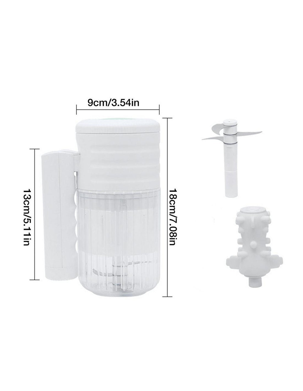 Cortador e Misturador Elétrico Portátil de LegumesFacilite o preparo das suas receitas com o cortador elétrico portátil de legumes. Ideal para triturar, picar e misturar diversos alimentos de forma prática e eficiente, poupando tempo na cozinha.Características Principais:Design Portátil:Compacto e fácil de transportar, ideal para uso em casa ou em viagens.Versatilidade:Perfeito para legumes, frutas, nozes e até para misturar sumos e massas.Fácil de Limpar:Componentes desmontáveis, garantindo praticidade na limpeza.Bateria Recarregável:Operação sem fios com carregamento via USB.Lâminas Afiadas:Feitas de aço inoxidável para um corte rápido e eficiente.Especificações Técnicas:Material: Plástico ABS e lâminas de aço inoxidável.Capacidade do Copo: 350 ml.Alimentação: Bateria recarregável via USB (5V).Dimensões: Compactas para fácil armazenamento.Peso: Leve, ideal para transporte.