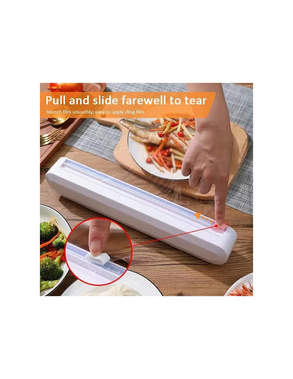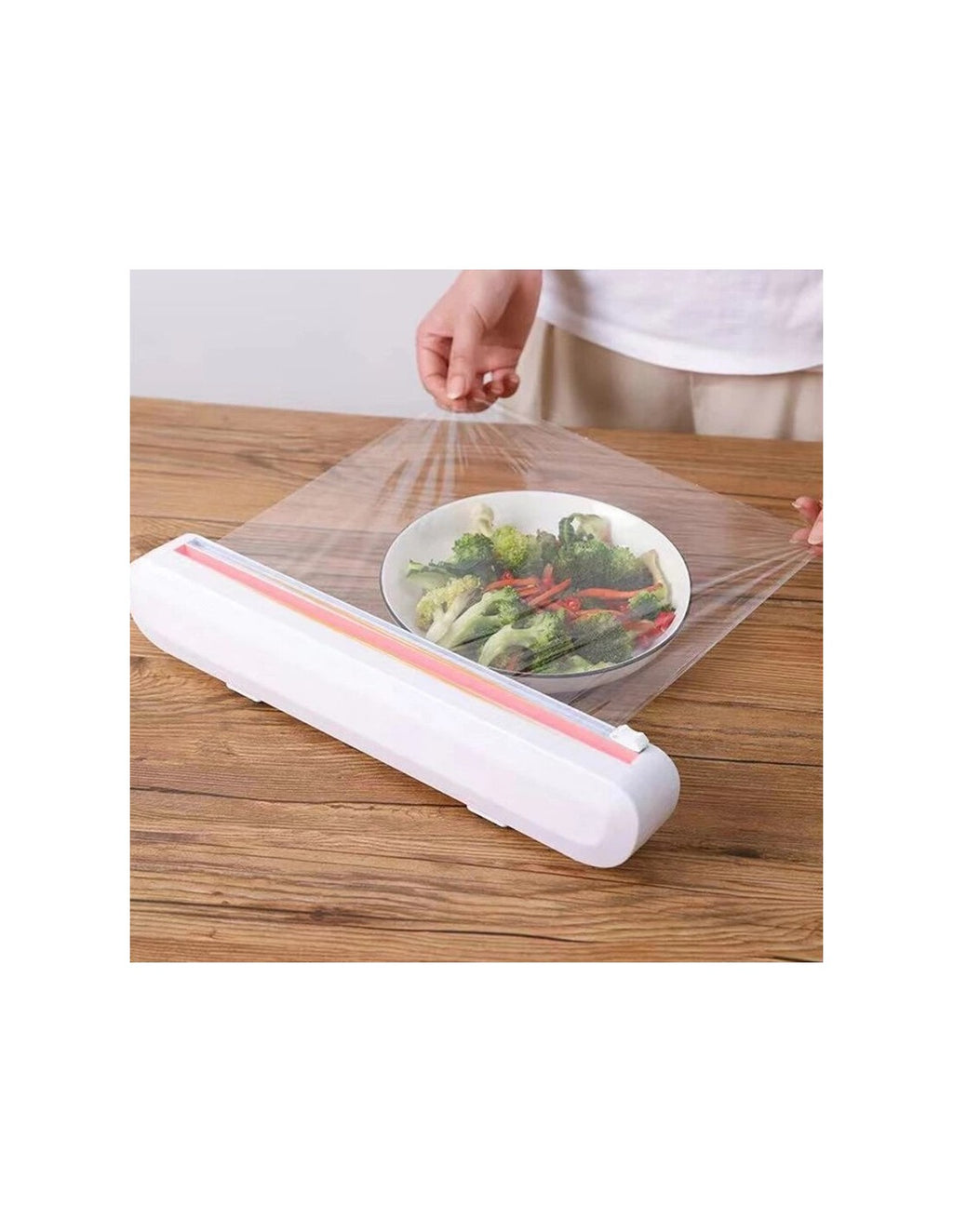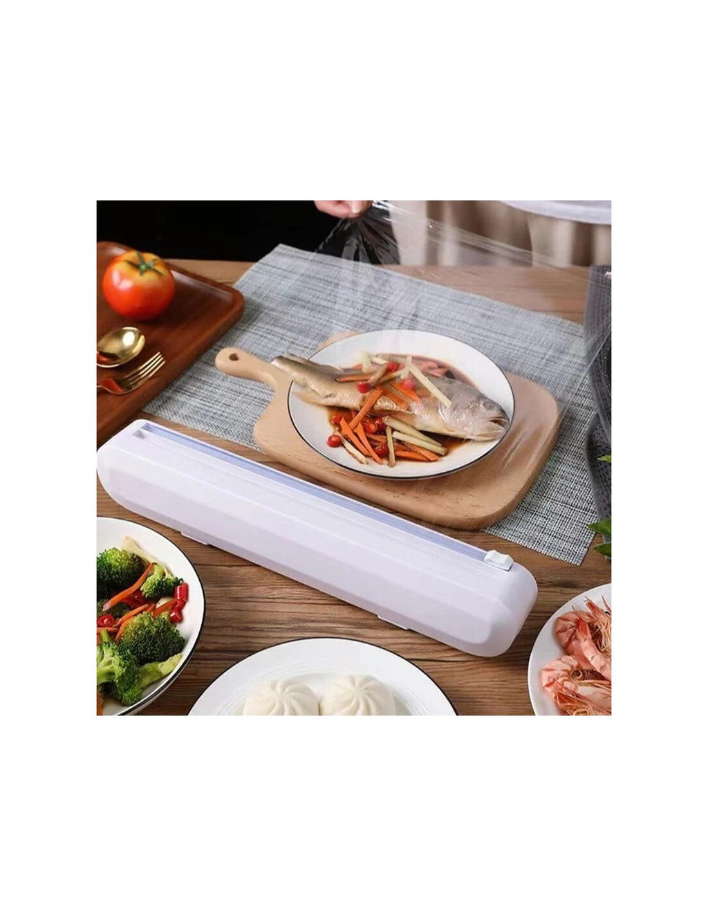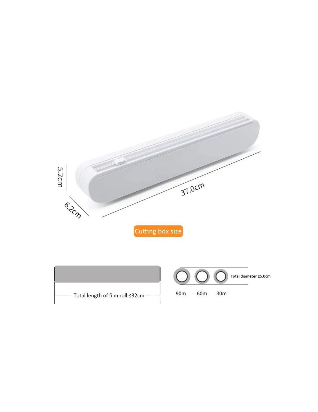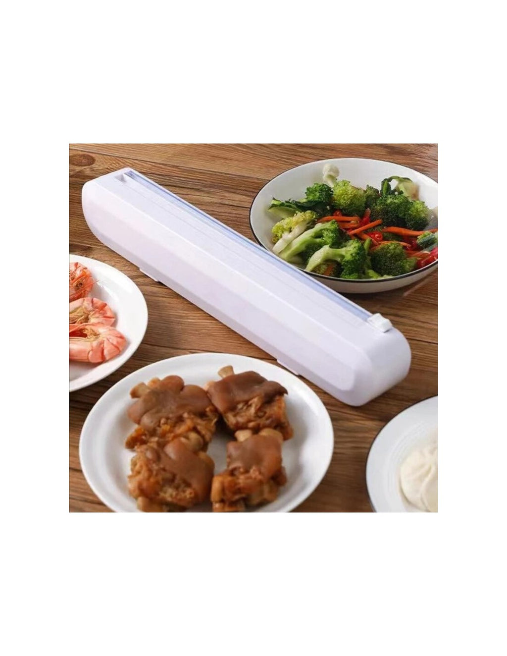 Dispensador de Filme Plástico com Cortador IntegradoTorne a conservação dos seus alimentos mais prática com este dispensador de filme plástico, equipado com um cortador preciso e seguro. Perfeito para uso doméstico ou profissional.Características Principais:Design Ergonómico:Facilita o manuseamento e aplicação do filme plástico, garantindo uma selagem eficiente.Corte Preciso:Lâmina integrada permite um corte rápido e seguro, evitando desperdícios.Material Durável:Fabricado em plástico ABS de alta qualidade, resistente ao uso diário.Compatibilidade Universal:Adequado para diferentes larguras de rolos de filme plástico.Fácil de Limpar:Superfície lisa e desmontável para manutenção prática.Especificações Técnicas:Material: ABSDimensões: 37 x 6 x 5 cmPeso: 400gCor: Branco