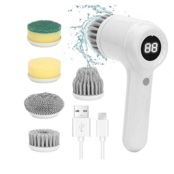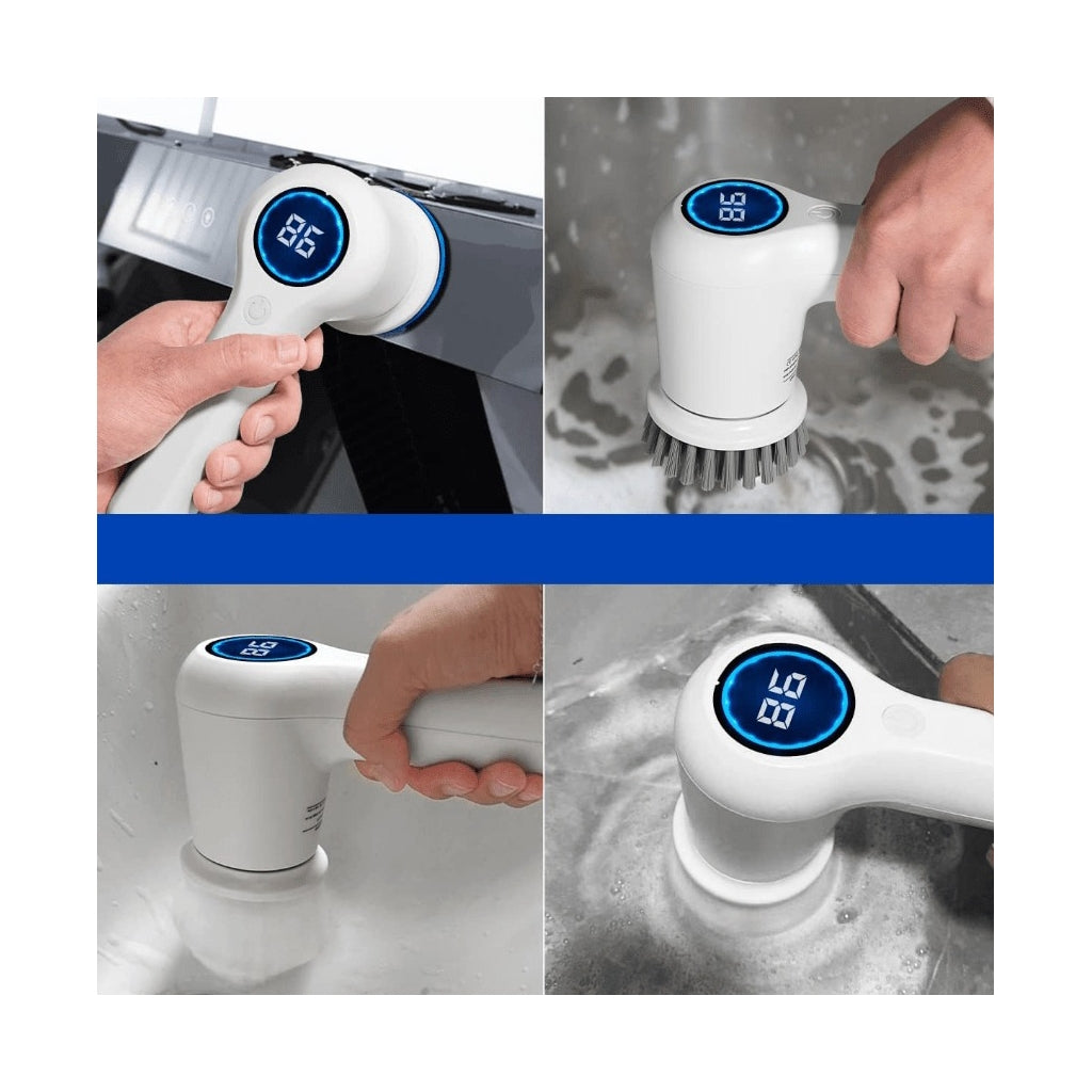 Escova de Limpeza Elétrica Multifuncional - Eficiência e VersatilidadeTorne as tarefas de limpeza mais rápidas e eficazes com esta Escova Elétrica Multifuncional. Com múltiplas cabeças de limpeza e design ergonómico, é ideal para várias superfícies e situações, desde utensílios de cozinha até azulejos.Características Principais:Múltiplas Cabeças Intercambiáveis:Inclui escova de cerdas macias, esponja para superfícies delicadas, almofada abrasiva para sujidade persistente e esponja metálica para gorduras incrustadas.Ecrã LED Digital:Indica a duração da bateria e o modo de funcionamento.Resistente à Água:Perfeito para limpezas húmidas, com classificação IPX7.Recarregável via USB:Oferece conveniência e mobilidade, com bateria de longa duração.Velocidade Ajustável:Adaptável a diferentes necessidades de limpeza.Especificações Técnicas:Alimentação: Recarregável via USBAutonomia: Até 90 minutosTempo de carga: 2 horasMaterial: ABS resistente e componentes de alta qualidadePeso: 480gDimensões: 20 x 8 x 8 cm