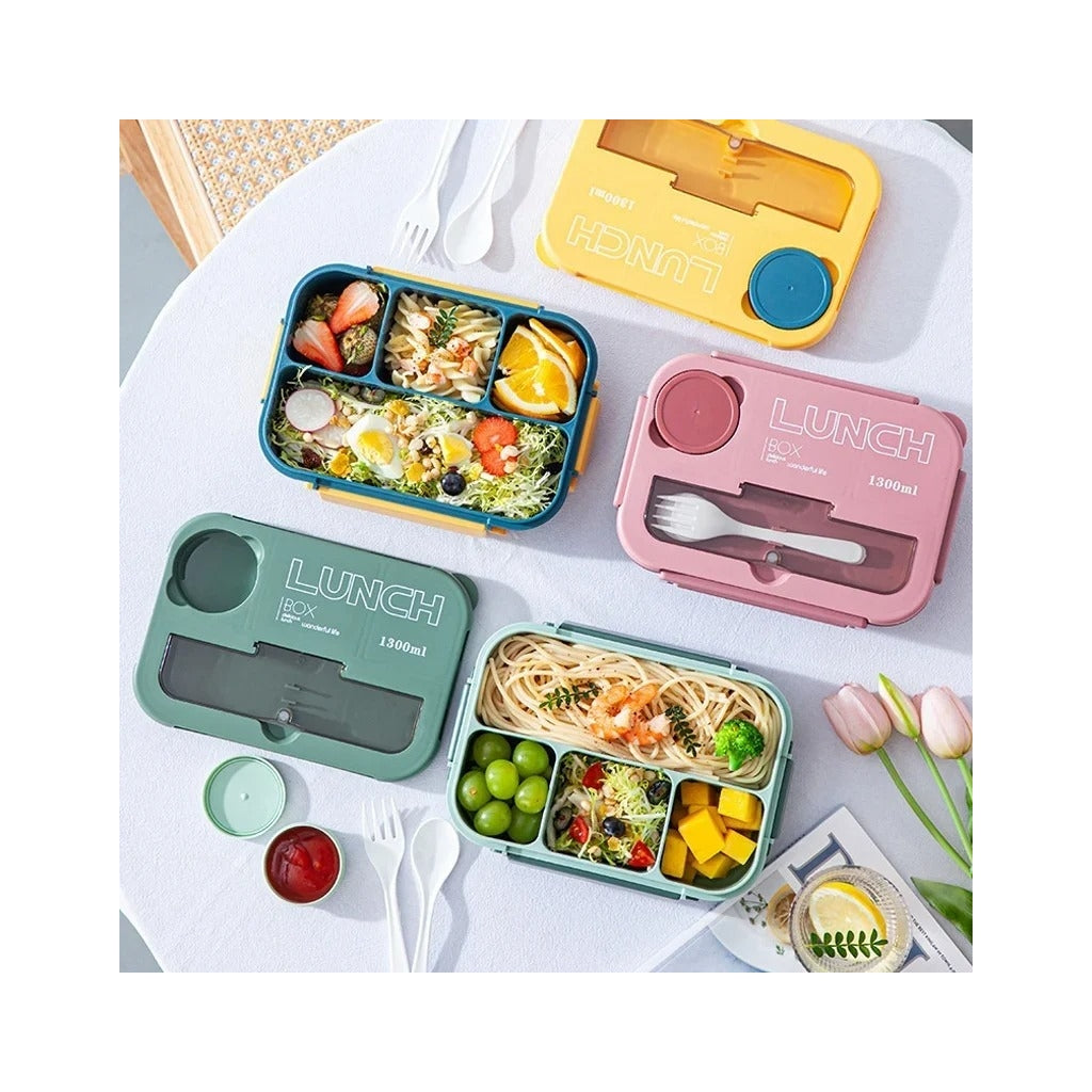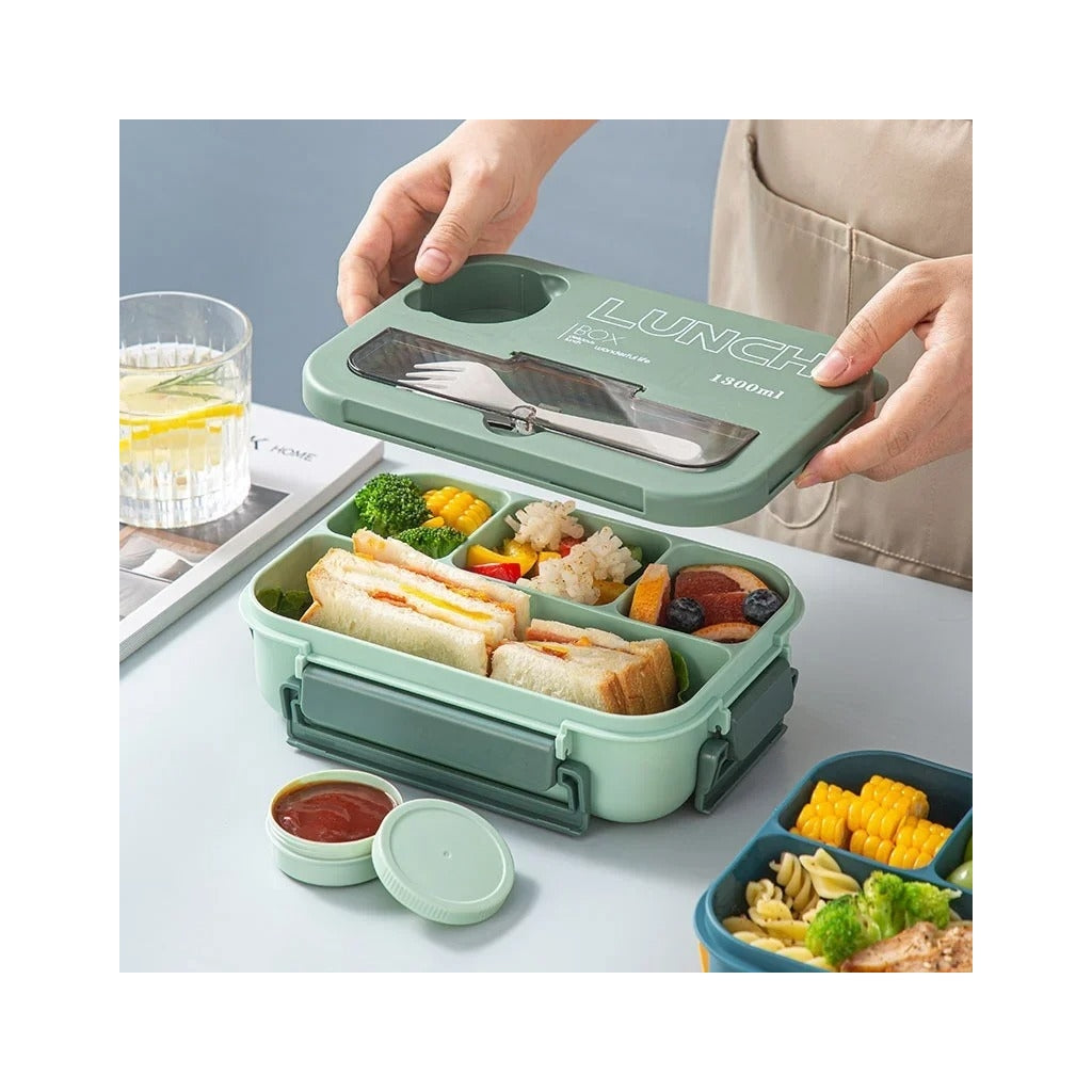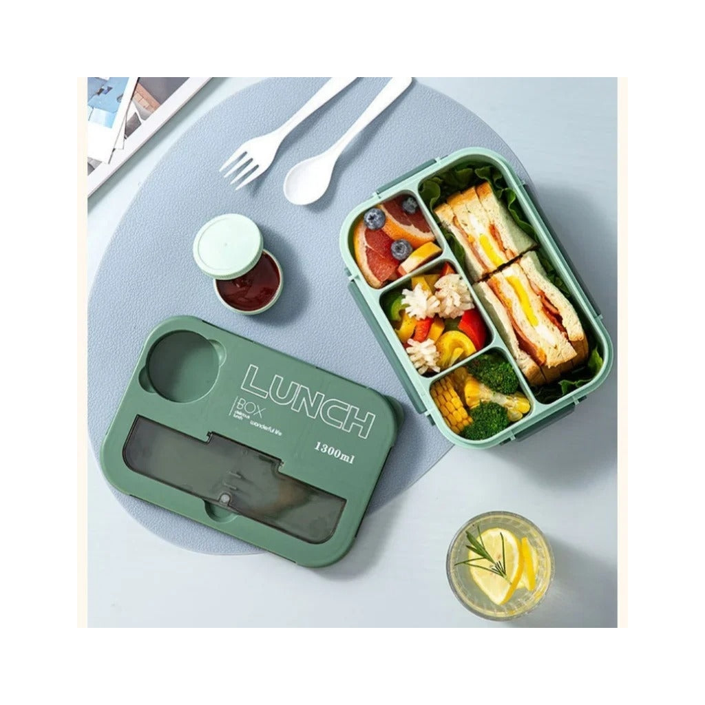 Lancheira com Divisórias – 1300mlLeve suas refeições favoritas para qualquer lugar com esta prática caixa de almoço de 1300ml. Perfeita para quem valoriza organização e frescura nos alimentos, garantindo refeições equilibradas e apetitosas onde quer que esteja.Características:Capacidade de 1300ml, ideal para porções generosas.Divisórias internas removíveis para separação de alimentos.Material durável e seguro para alimentos.Tampa com fecho hermético, evitando derrames.Inclui compartimento extra para molhos.Fácil de lavar e transportar.