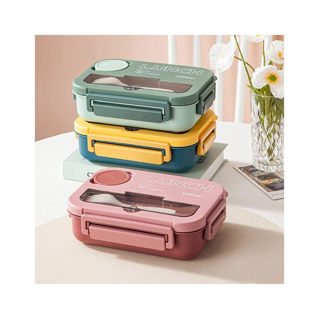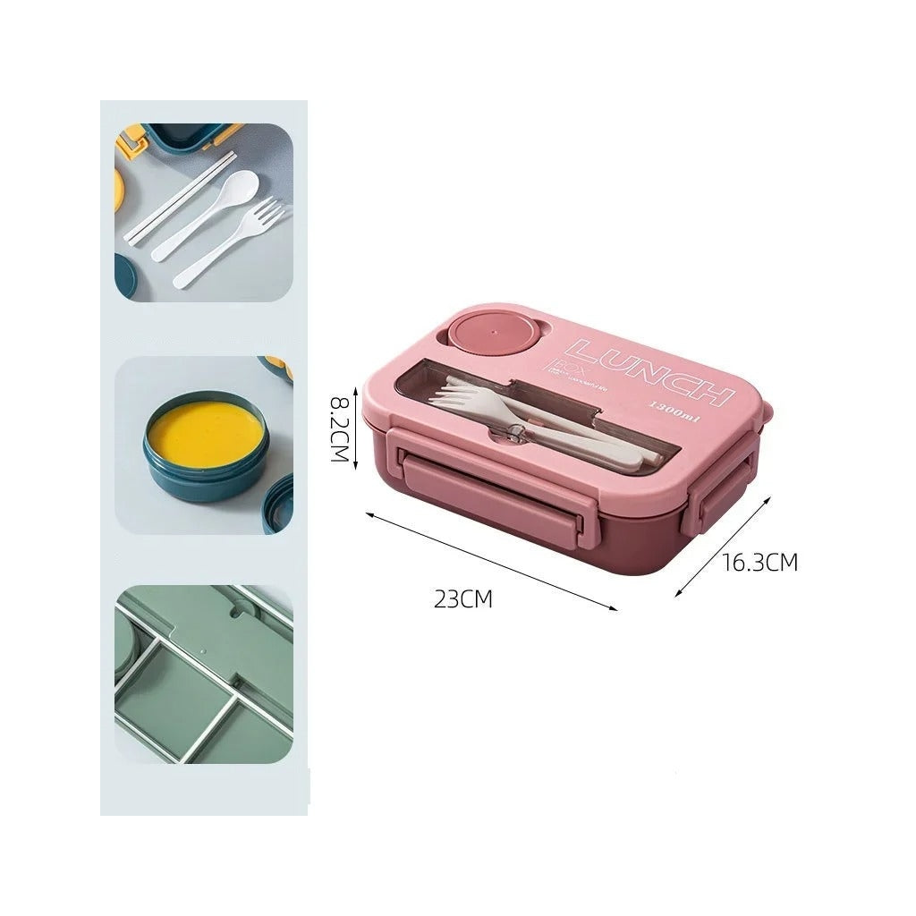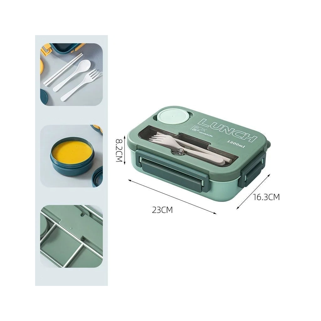 Lancheira com Divisórias – 1300mlLeve suas refeições favoritas para qualquer lugar com esta prática caixa de almoço de 1300ml. Perfeita para quem valoriza organização e frescura nos alimentos, garantindo refeições equilibradas e apetitosas onde quer que esteja.Características:Capacidade de 1300ml, ideal para porções generosas.Divisórias internas removíveis para separação de alimentos.Material durável e seguro para alimentos.Tampa com fecho hermético, evitando derrames.Inclui compartimento extra para molhos.Fácil de lavar e transportar.