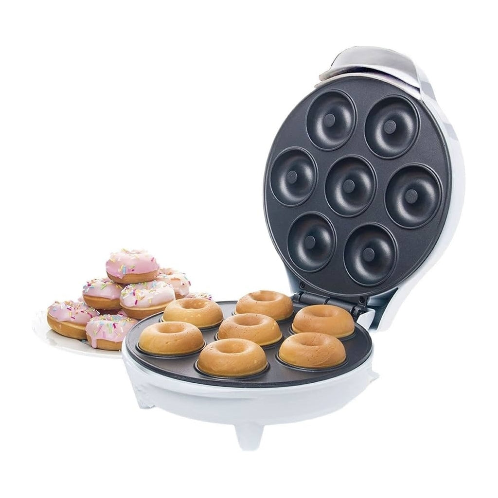 Máquina de Donuts ElétricaPrepare deliciosos donuts caseiros em minutos com esta prática máquina elétrica. Ideal para criar doces perfeitos e personalizados para festas, pequenos-almoços ou sobremesas, sem complicações.Características:Capacidade para 7 donuts por vez.Revestimento antiaderente para fácil remoção e limpeza.Design compacto e moderno, ideal para qualquer cozinha.Luz indicadora de aquecimento e pronto para usar.Baixo consumo de energia, proporcionando eficiência.Pés antiderrapantes para maior segurança.Ideal para receitas doces ou salgadas.