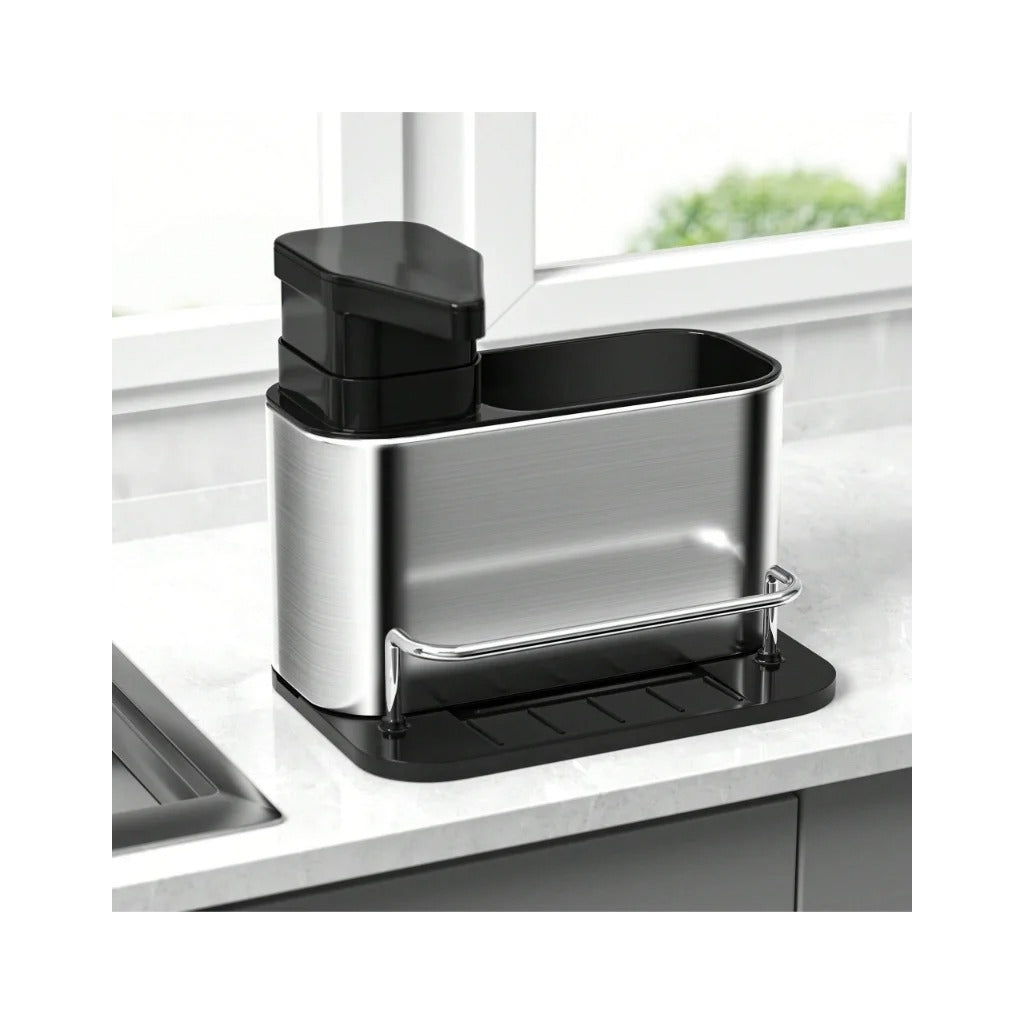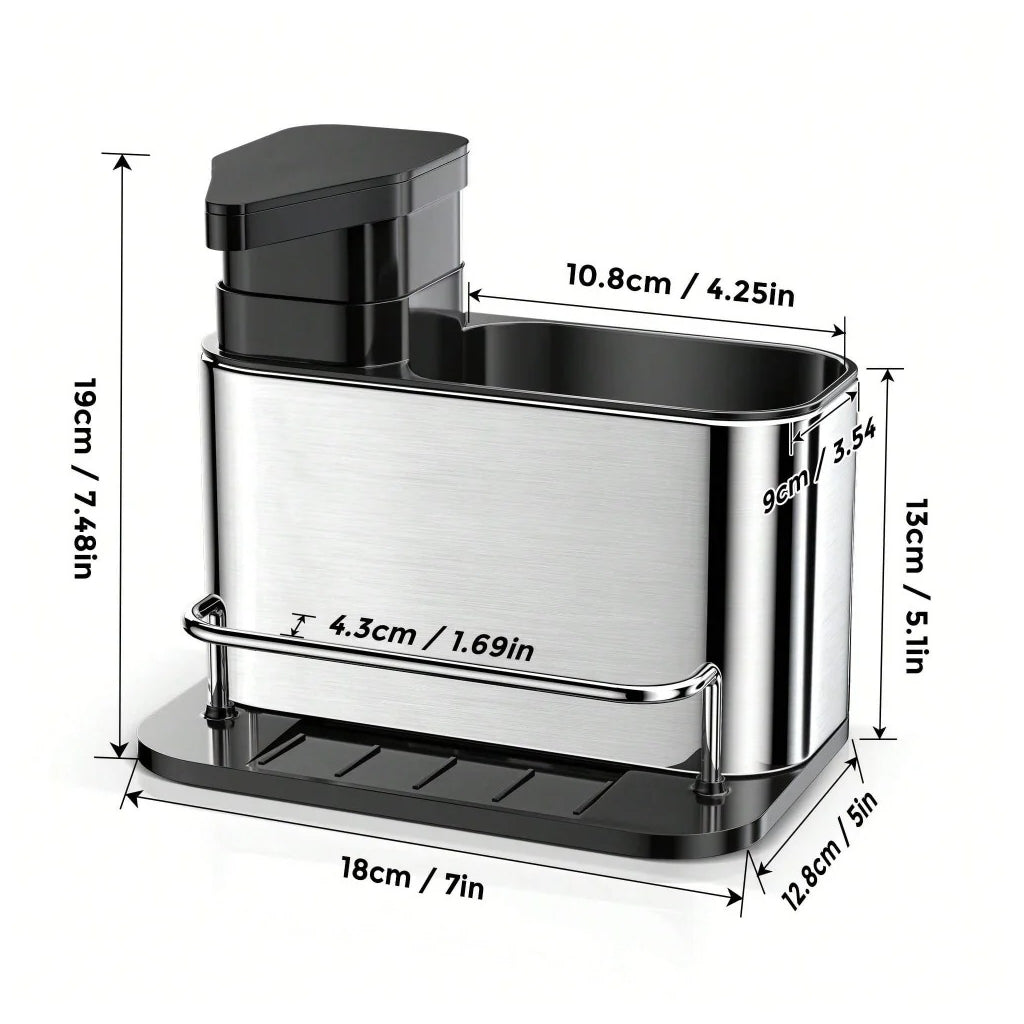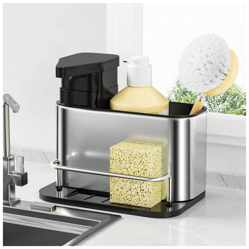 Organizador de Talheres com Dispensador de DetergenteEste organizador multifuncional é a solução ideal para manter a sua cozinha prática e limpa. Com um dispensador de detergente embutido, combina organização e eficiência num único produto.Características:Compartimentos separados para talheres e utensílios de cozinha.Dispensador de detergente integrado para maior praticidade.Base antiderrapante para estabilidade.Design moderno em aço inoxidável, resistente à corrosão.Fácil de desmontar e limpar.