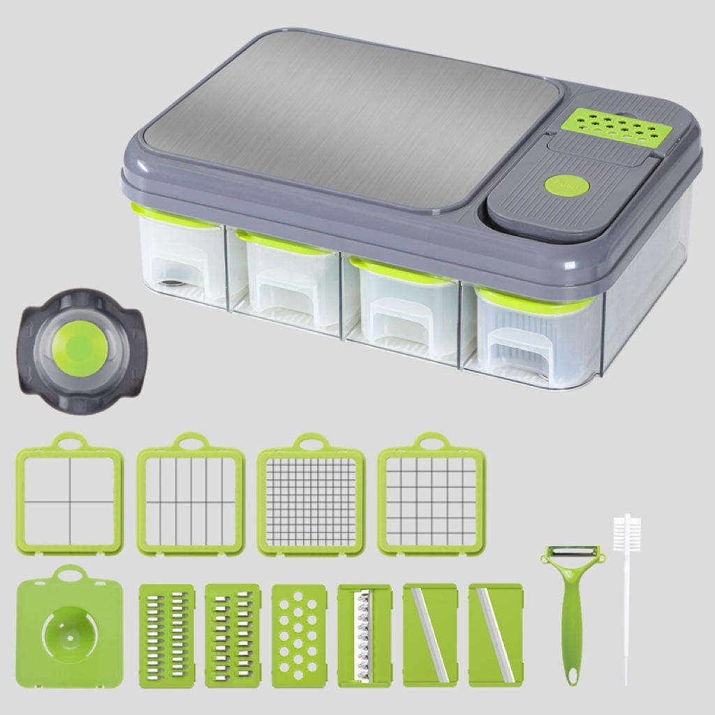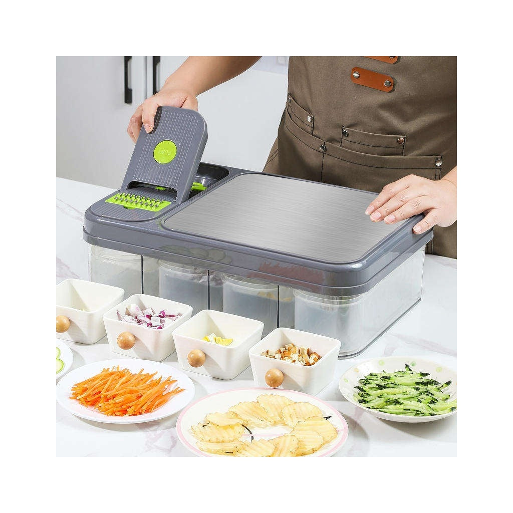 Otimize o tempo na cozinha com esta estação de preparação de alimentos multifuncional 8 em 1. Com várias lâminas e funções integradas, facilita o corte, fatiamento, ralar e mais, adaptando-se a diversas receitas. Ideal para quem busca praticidade e organização ao preparar refeições.Características Principais:8 em 1 Multifuncional:Inclui lâminas para cortar, fatiar, ralar e juliana.Design compacto e integrado:Fácil de armazenar e economiza espaço.Sistema seguro de lâminas intercambiáveis:Reduz o risco de acidentes durante o uso.Recipiente para recolha de alimentos:Mantém a bancada limpa e organizada.Ideal para frutas, legumes e vegetais:Crie cortes profissionais com rapidez.