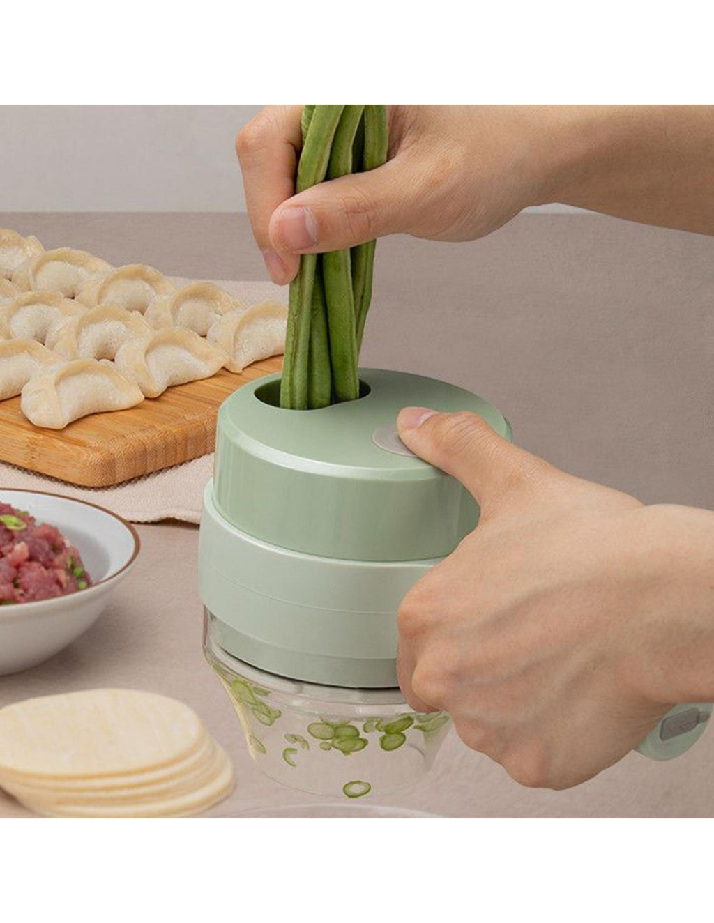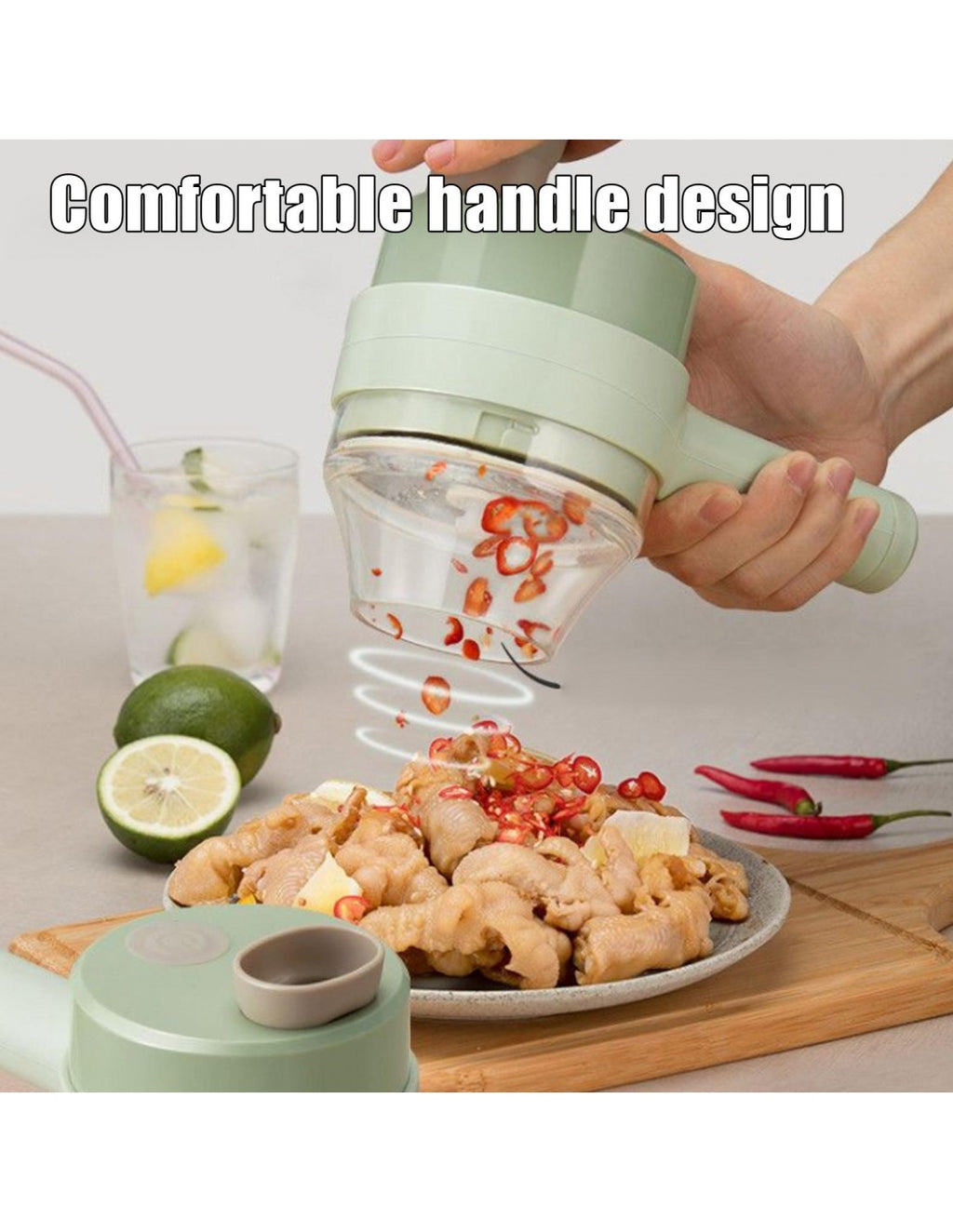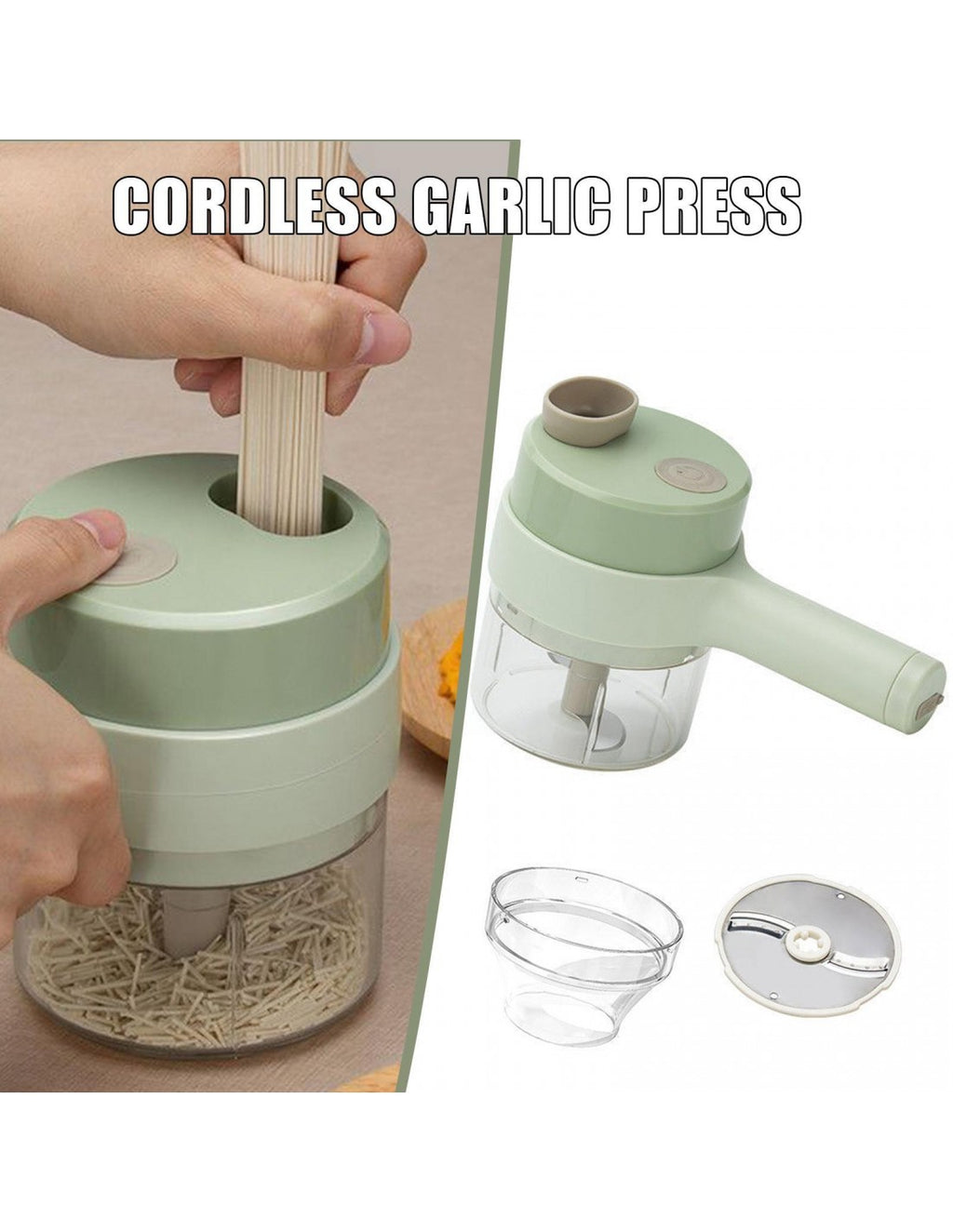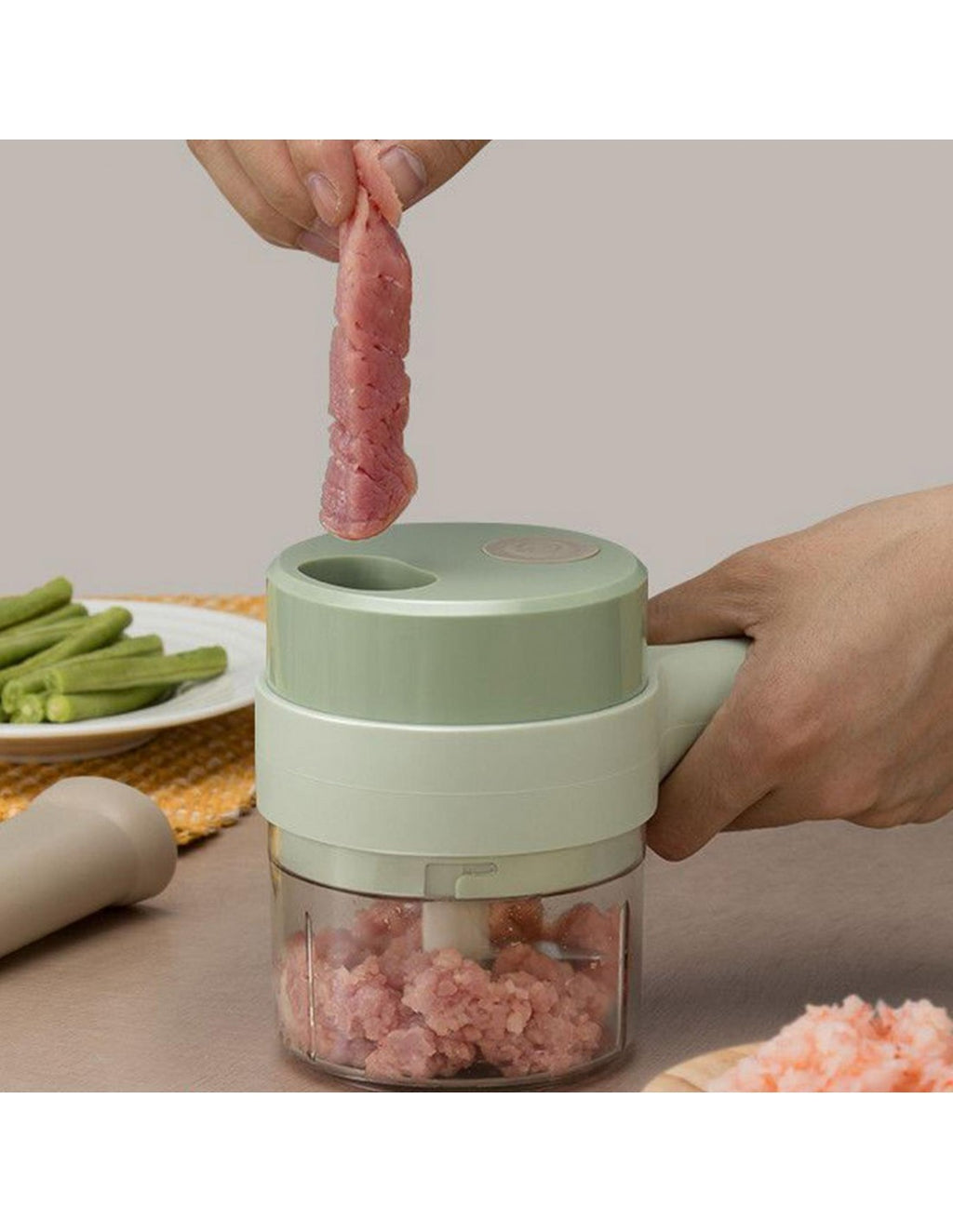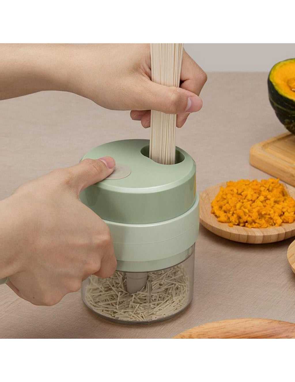 Triturador Automático de AlimentosPrepare as suas refeições de forma prática e eficiente com este triturador manual. Ideal para cortar, picar ou moer diversos alimentos, é o utensílio perfeito para facilitar o dia a dia na cozinha, sem necessidade de eletricidade.Vantagens do ProdutoDesign Ergonómico: Fácil de usar e manusear.Lâminas Afiadas: Garante cortes precisos e rápidos.Compacto e Portátil: Ocupa pouco espaço, ideal para cozinhas pequenas.Fácil de Limpar: Desmontável para uma limpeza prática e completa.Multifuncional: Adequado para vegetais, frutas, ervas e até carne.Especificações TécnicasMaterial: Plástico ABS e aço inoxidável.Dimensões: 12 cm x 8 cm.Capacidade: 300 ml.Peso: 400g.Cor: Verde pastel.