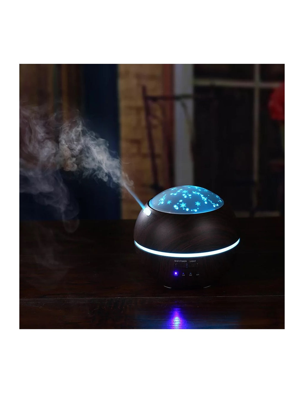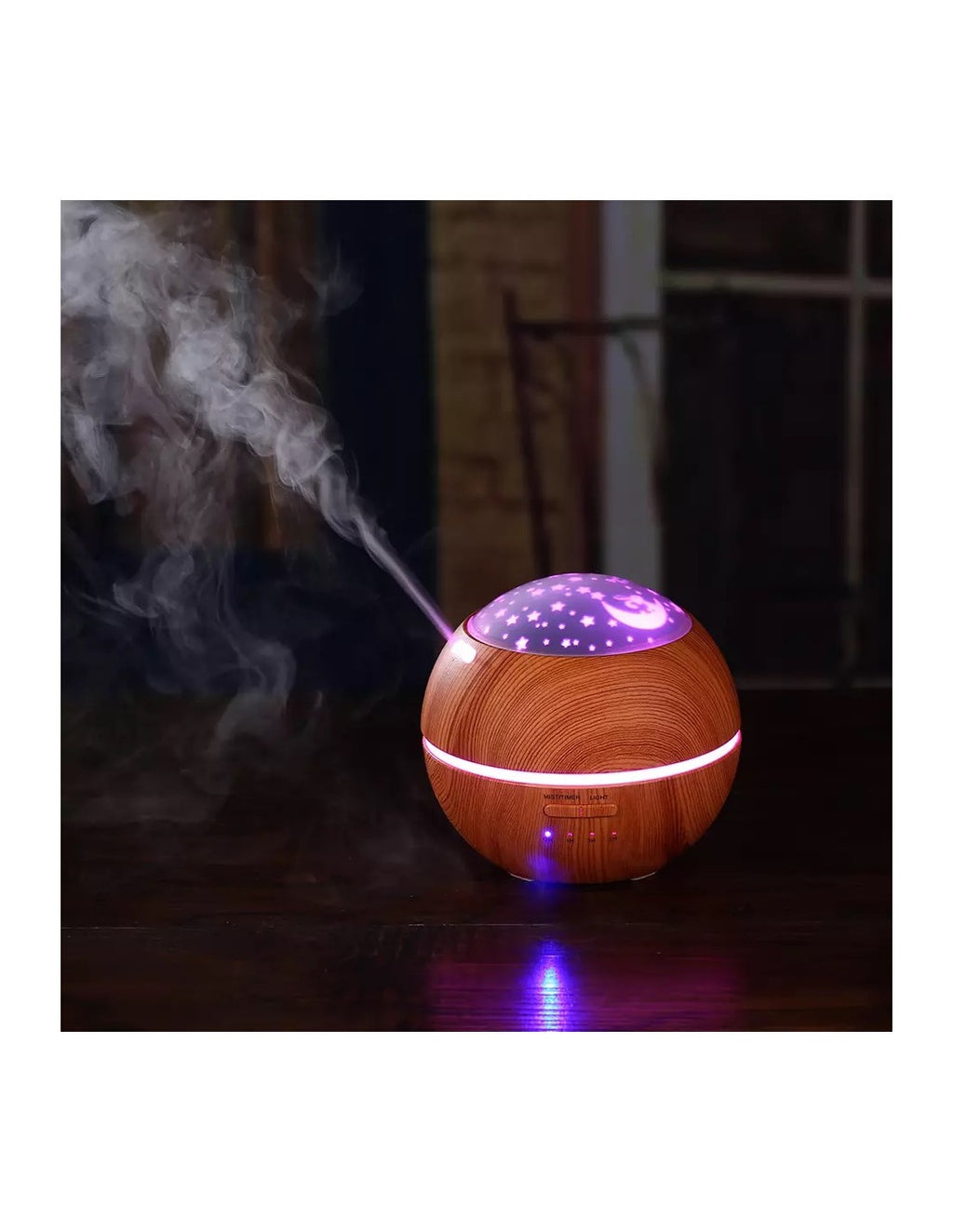 Difusor de Aromas com Projeção de Estrelas – Atmosfera Relaxante e ElegânciaTransforma qualquer espaço com o Difusor de Aromas com Projeção de Estrelas. Este equipamento combina as vantagens da aromaterapia com um design sofisticado e luzes projetadas que criam um ambiente relaxante e acolhedor. Ideal para casas, escritórios ou até mesmo quartos de crianças.Características principais:Projeção Estrelada: Oferece uma atmosfera mágica e relaxante, ideal para momentos de descanso.Aromaterapia Revigorante: Difunde fragrâncias suaves para purificar o ar e aliviar o stress.Humidificador Silencioso: Mantém o ar fresco e confortável, sem interferir no sono ou concentração.Luz LED Multicolor: Vários modos de luz para personalizar o ambiente.Design Moderno e Compacto: Com acabamento em madeira, combina funcionalidade e elegância.Especificações técnicas:Capacidade do reservatório: 300mlModos de iluminação: Multicolor com efeito estreladoTemporizador: 1h, 3h, 6hAlimentação: USBDimensões: 15 cm x 12 cm (aproximadamente)