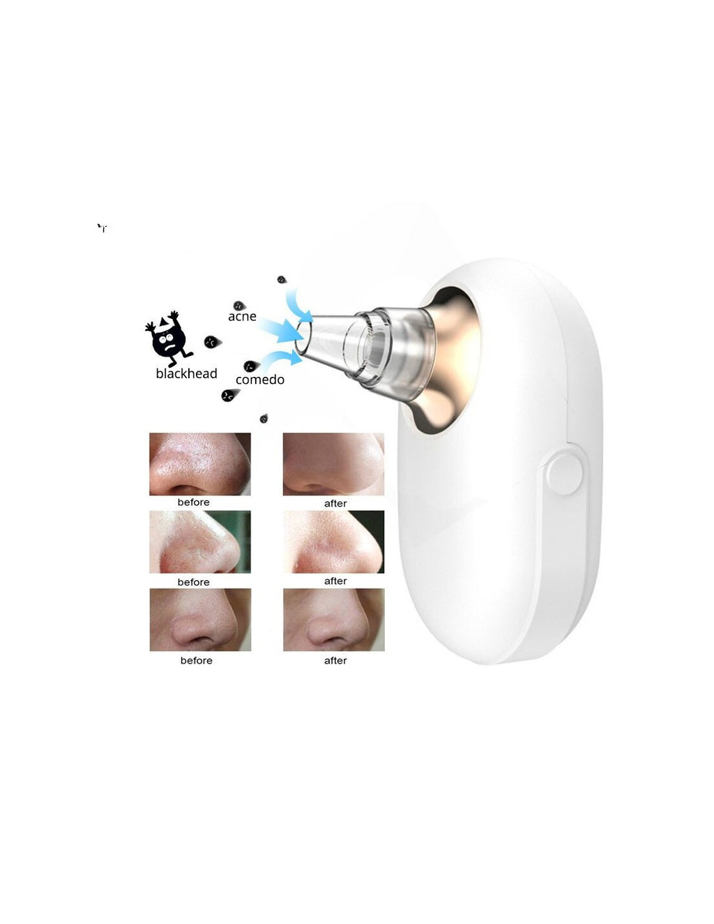 Removedor de Cravos Elétrico com Sucção ProfundaElimine impurezas e cravos do rosto de forma rápida e eficaz com este removedor de cravos elétrico. Equipado com tecnologia de sucção profunda, este aparelho ajuda a limpar os poros e deixar a sua pele suave e revitalizada. Ideal para uso diário, promove uma pele saudável e radiante.Características principais:Sucção ajustável:Vários níveis de intensidade para diferentes tipos de pele.Luz LED embutida:Facilita a visualização dos cravos durante o uso.Design ergonómico:Fácil de manusear, confortável e portátil.Cabeças intercambiáveis:Inclui várias pontas para diferentes funções (limpeza profunda, massagem e esfoliação).Seguro para todos os tipos de pele:Material delicado que não causa irritações.Especificações técnicas:Material: ABS de alta qualidadeAlimentação: Recarregável via USBDimensões: Compacto e leve para transporteCor: BrancoBenefícios de usar o removedor de cravos:Reduz a aparência de cravos e acneMelhora a textura e aparência da pelePromove a circulação sanguínea facialLimpeza mais eficaz e prática em comparação com métodos tradicionais