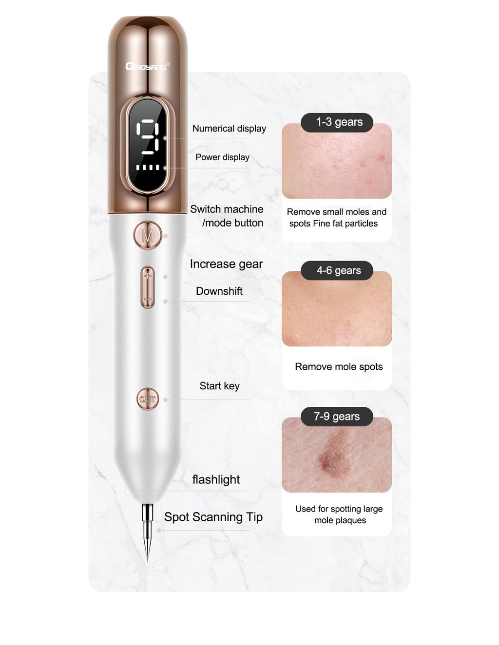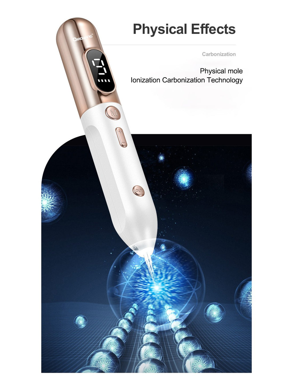 Caneta Removedora de Sinais QA-MT82 – Beleza e Cuidado PessoalA Caneta Removedora de Sinais QA-MT82 é uma solução prática e eficaz para eliminar sinais, manchas de idade, sardas e pequenas imperfeições da pele, sem necessidade de procedimentos invasivos. Ideal para quem procura um cuidado pessoal seguro e de resultados profissionais no conforto de casa.Características Principais:Tecnologia Avançada:Permite a remoção de sinais e manchas de forma precisa e segura.Ecrã LCD:Exibe os níveis de intensidade e o estado da bateria para um uso intuitivo.Níveis Ajustáveis:Três níveis de intensidade para diferentes tipos de pele e necessidades.Design Ergonómico:Leve e fácil de manusear, garantindo conforto durante a utilização.Sem Dor e Seguro:Processo indolor com mínima irritação para a pele.Vantagens:Reduz manchas e imperfeições de forma visível.Adequado para uso doméstico ou profissional.Compacto e portátil, perfeito para levar em viagens.Especificações Técnicas:Modelo:QA-MT82Material:ABS e aço inoxidávelNíveis de Intensidade:3Ecrã:LCDBateria:Recarregável via USBCor:Branco e dourado
