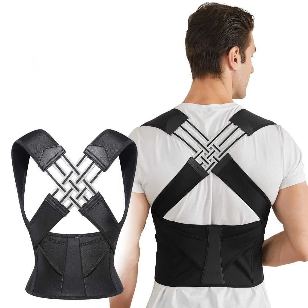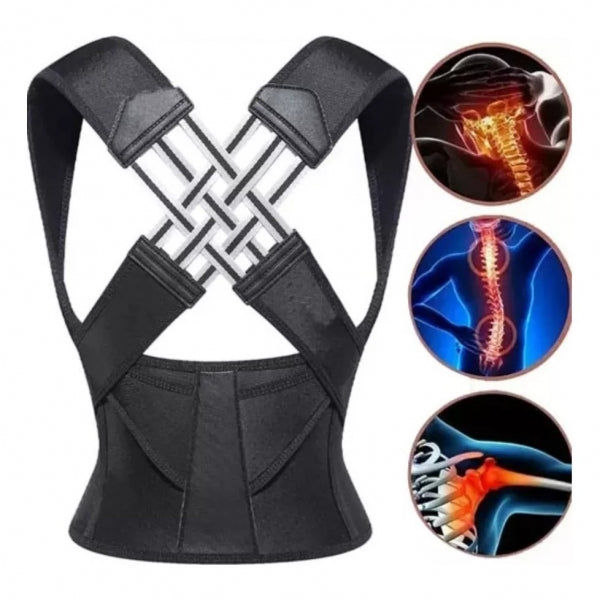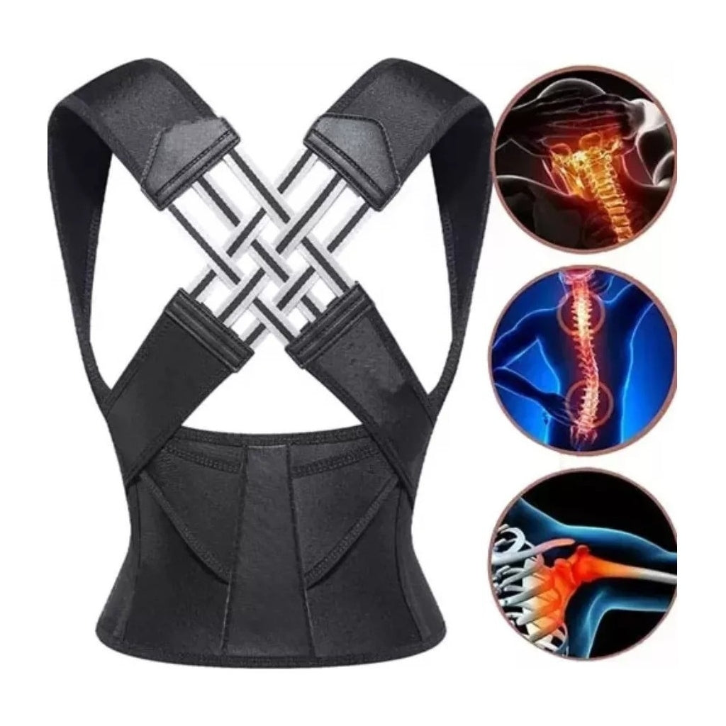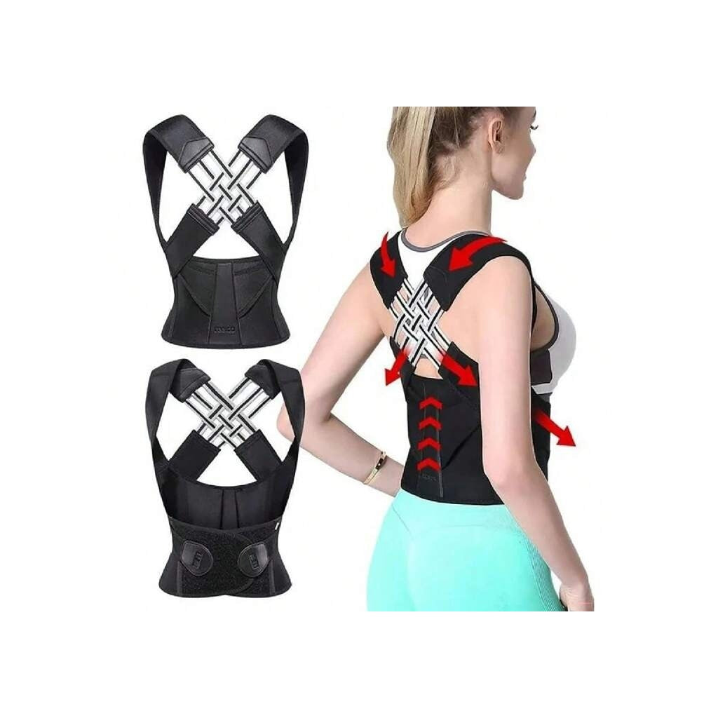 Corretor de Postura com Suporte Lombar e Ajuste PersonalizadoEste corretor de postura foi projetado para ajudar a alinhar a coluna vertebral e melhorar a postura, reduzindo dores nas costas e ombros. Com um design ergonómico, ajustável e confortável, é ideal para uso diário em casa, no trabalho ou durante atividades físicas.Características PrincipaisCorreção Postural Eficiente: Alinha a coluna e previne a curvatura das costas, promovendo uma postura saudável.Suporte Lombar: Proporciona suporte adicional à região inferior das costas, aliviando tensões e dores.Design Ergonómico: Ajusta-se perfeitamente ao corpo, oferecendo conforto durante longos períodos de uso.Material Respirável e Leve: Fabricado com tecido de alta qualidade, permite a ventilação, evitando desconforto.Fácil Ajuste: Correias ajustáveis que se adaptam a diferentes tamanhos e formas corporais.Especificações TécnicasMaterial: Nylon e neoprene respirávelTamanhos: Ajustável, adequado para diferentes medidasPeso: 300gCor: PretoIndicado para: Homens e mulheresTamanhoAltura (cm)Peso (Kg)Cintura (cm)S110-14040-5850-60M140-16058-7856-63L150-16878-9863-70XL158-17298-11570-76XXL162-175115-13576-83