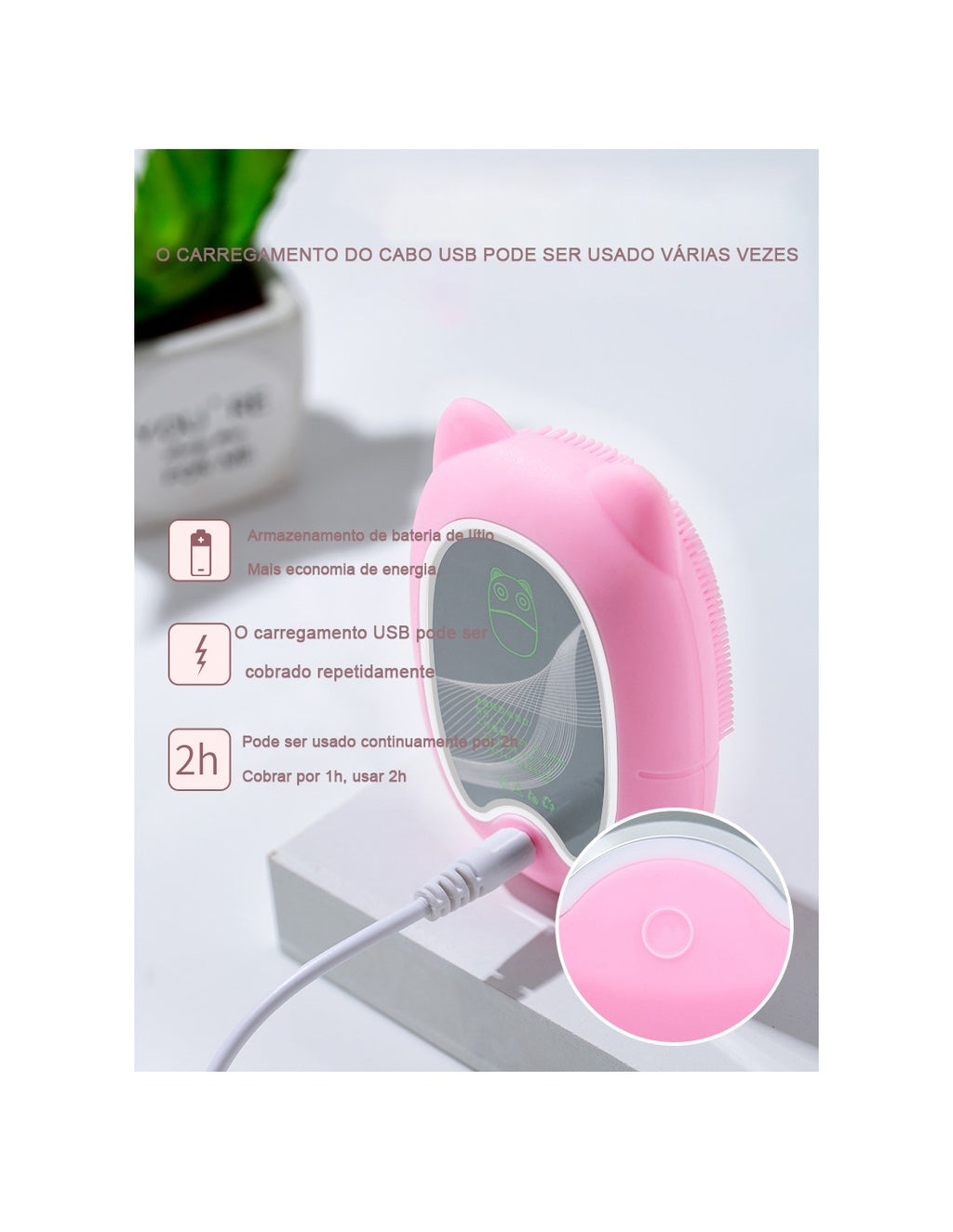 Escova de Limpeza Facial QA-T649 – Cuidados Avançados para a Sua PeleDescubra a combinação perfeita entre tecnologia e design adorável com a Escova de Limpeza Facial QA-T649. Ideal para manter a pele limpa, suave e revitalizada.Características Principais:Vibração de Alta Frequência:Proporciona uma limpeza profunda, removendo eficazmente impurezas, maquilhagem e células mortas.Design Ergonómico e Divertido:Com um formato inspirado em um animal fofo, facilita o manuseio e torna a rotina de cuidados mais agradável.Silicone de Alta Qualidade:Material suave e seguro, ideal para todos os tipos de pele, incluindo as mais sensíveis.Portátil e Compacta:Perfeita para levar em viagens ou usar em qualquer lugar.Resistente à Água (IPX7):Pode ser usada com segurança no banho.Benefícios:Proporciona uma pele mais limpa e luminosa.Estimula a circulação sanguínea e melhora a elasticidade da pele.Torna a rotina de limpeza facial mais eficaz e prática.Especificações Técnicas:Modelo:QA-T649Material:SiliconeFrequência de Vibração:6000 rpmBateria:200mAh (recarregável via micro USB)Resistência à Água:Certificação IPX7