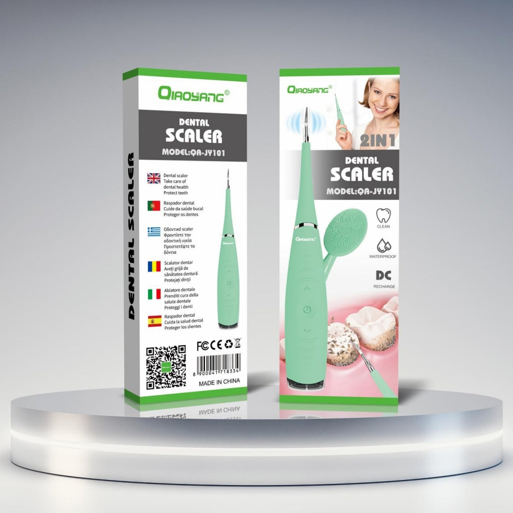 Raspador Dental 2 em 1 QA-JY101 – Cuide da Sua Saúde BucalO Raspador Dental QA-JY101 é uma solução inovadora para manter os dentes limpos e saudáveis. Com tecnologia 2 em 1, este dispositivo é ideal para a remoção de placas e manchas, proporcionando uma experiência de higiene oral eficaz no conforto de sua casa.Características Principais:Tecnologia 2 em 1:Inclui raspador dental e escova de silicone.Remoção Eficiente:Elimina placa bacteriana, manchas e resíduos alimentares.Design Ergonómico:Fácil de manusear e seguro para uso diário.Impermeável:Pode ser utilizado com segurança em ambientes húmidos.Recarga Prática:Alimentado por USB, garantindo autonomia e praticidade.Benefícios:Melhora a saúde das gengivas e previne problemas dentários.Proporciona uma sensação de limpeza profissional sem sair de casa.Fácil de usar, ideal para complementar a rotina de higiene oral.Especificações Técnicas:Modelo:QA-JY101Material:Silicone médico e aço inoxidávelImpermeabilidade:Certificação IPX7Carregamento:USB (cabo incluído)Peso:Leve e portátil para transporte fácil
