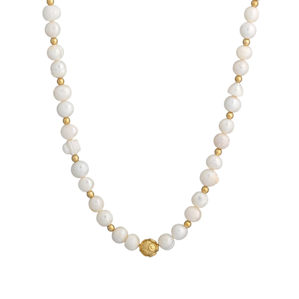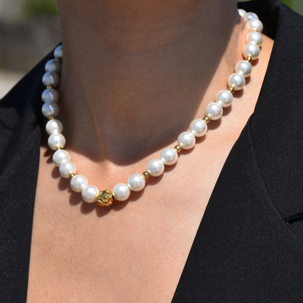 Colar em banho ouro Bijoux de pérolas com bola de viana.