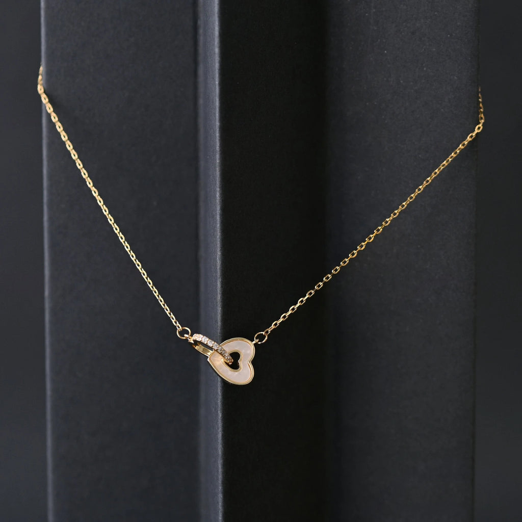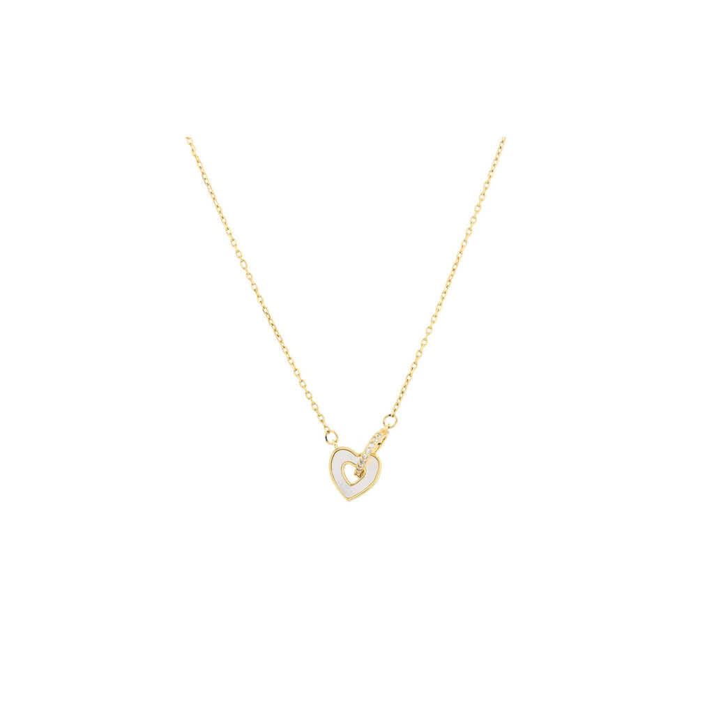 Colar Bijoux com corações entrelaçados de brilhantes e madrepérola.