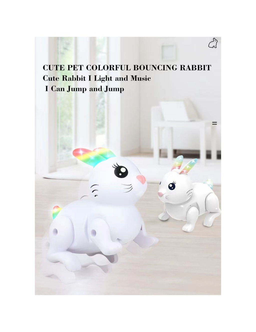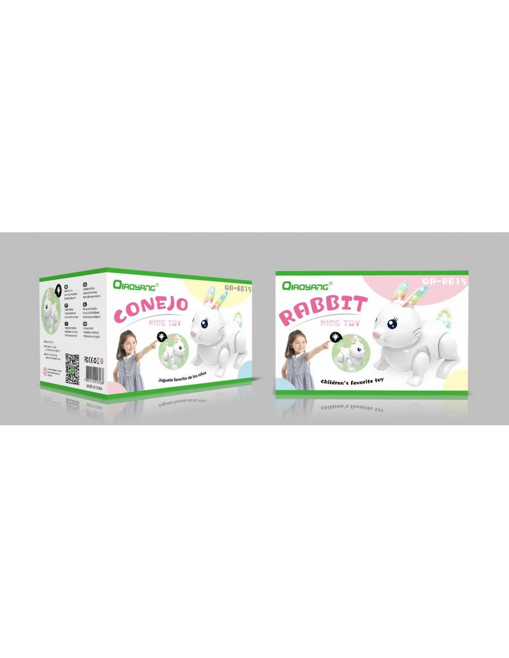 Brinquedo Interativo Coelho Qiaoyang QA-RB15 – Diversão e Aprendizagem para CriançasOBrinquedo Interativo Coelho Qiaoyang QA-RB15é perfeito para proporcionar momentos de alegria e estímulo às crianças. Com luzes coloridas e movimentos animados, este coelhinho encantador é o companheiro ideal para horas de diversão educativa.Características Principais:Design Atraente e Interativo: Apresenta um coelhinho com orelhas luminosas e movimentos divertidos que captam a atenção das crianças.Luzes LED Coloridas: As orelhas do coelho iluminam-se em diferentes cores, criando um efeito visual encantador.Movimentos Realistas: O brinquedo imita os movimentos naturais de um coelho, tornando a experiência ainda mais envolvente.Seguro e Durável: Fabricado com materiais resistentes e não tóxicos, ideal para crianças de todas as idades.Compacto e Portátil: Fácil de transportar, perfeito para levar em viagens ou brincadeiras ao ar livre.Benefícios:Estimula o Desenvolvimento Sensorial: As luzes e os movimentos promovem a coordenação visual e motora.Diversão e Entretenimento: Um brinquedo interativo que mantém as crianças entretidas por horas.Fácil de Usar: Basta ligar para começar a diversão, sem necessidade de montagem complexa.Especificações Técnicas:Modelo: QA-RB15Material: Plástico não tóxicoLuzes: LED colorido nas orelhasMovimentos: Automáticos e interativosAlimentação: Pilhas (não incluídas)