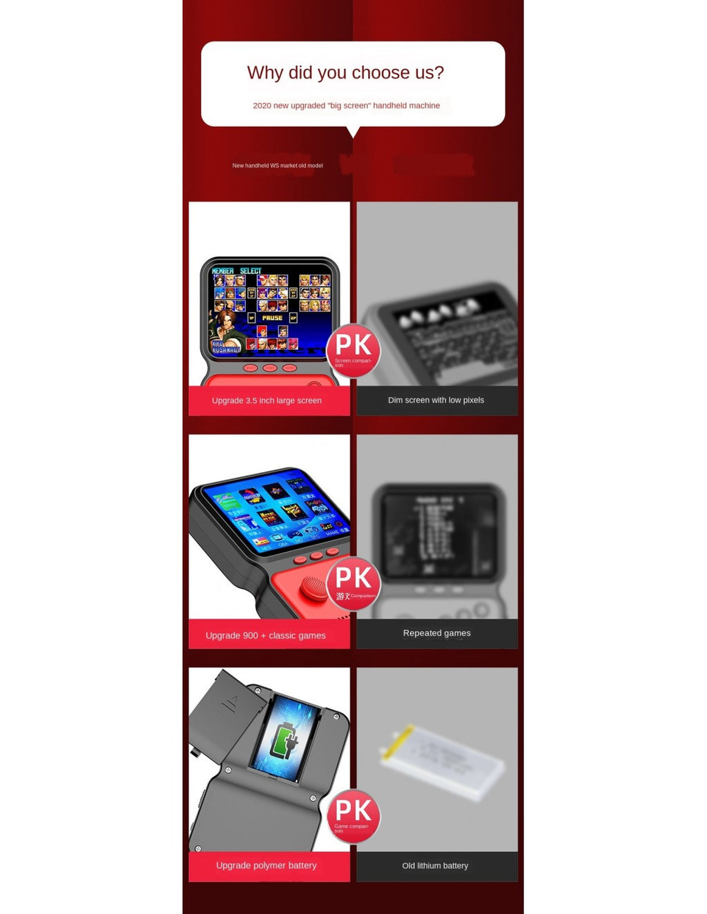 Consola M3 - Diversão Portátil com Centenas de Jogos ClássicosA Consola M3 é a escolha ideal para os amantes de jogos clássicos. Compacta, portátil e equipada com uma vasta biblioteca de títulos icónicos, oferece horas de diversão para todas as idades. Seja em casa ou em viagem, esta consola é perfeita para reviver momentos nostálgicos com jogos que marcaram gerações.Jogos IncluídosEntre os inúmeros jogos disponíveis, destacam-se:Clássicos de Ação e Aventura:King of Fighter, Metal Slug, Sonic Advance, Super Mario 14, Contra, Castlevania 2, Dragon Ball Z.Jogos Infantis e Família:Pac-Man, Mickey Mania, Scooby-Doo, Timon and Pumba, Hello Kitty.Desporto e Estratégia:FIFA Soccer, NBA Jam, Tetris 2, Mahjong.Super-Heróis e Filmes:Batman, Spider-Man, Superman Returns, X-Men, Star Wars.E muitos mais!Uma biblioteca que agrada desde fãs de arcade até aos entusiastas de aventura e estratégia.CaracterísticasAutonomia Prolongada:Equipado com uma bateria de 1020mAh, oferece até 10 horas de uso contínuo. Ideal para longas viagens e sessões de jogo.Tamanho Compacto:Com dimensões de 10,2 cm x 16,9 cm x 3,2 cm, é leve e fácil de transportar.Ecrã de Alta Qualidade:Tela de 3" polegadas para gráficos nítidos e envolventes.Interface Amigável:Navegação fácil e intuitiva para todas as idades.BenefíciosDiversão Retro:Reviva os melhores momentos dos jogos clássicos num único dispositivo.Portabilidade:Design compacto e bateria de longa duração, permitindo jogos em qualquer lugar.Variedade:Centenas de jogos incluídos, garantindo opções para todos os gostos e idades.