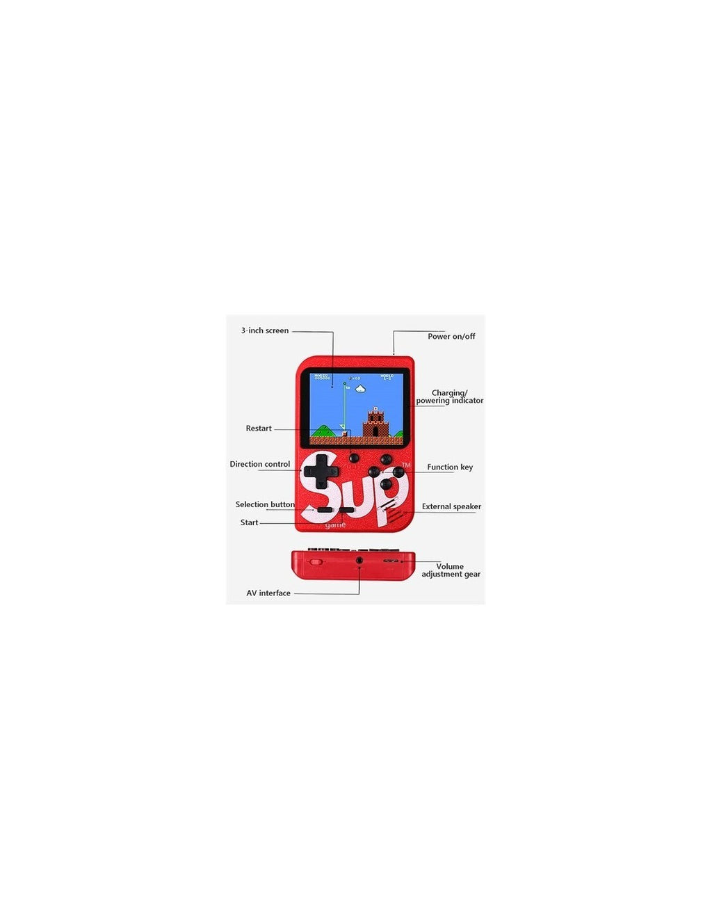 Consola Retro Portátil com 400 Jogos ClássicosDesfrute de momentos nostálgicos com esta Consola Retro Portátil, que inclui 400 jogos clássicos pré-carregados. Com um design vintage e compacto, é perfeita para os amantes de jogos retro e para presentear. Leve, prática e com horas de diversão garantida, pode ser usada em qualquer lugar.Características400 jogos incluídos:Uma ampla seleção de jogos icónicos para todas as idades.Ecrã colorido de 3 polegadas:Oferece uma experiência de visualização vibrante e nítida.Comando adicional:Permite multijogador para diversão em dupla.Bateria recarregável:Duração até 6 horas com uma bateria de 1020mAh.Conexão à TV:Experimente jogar numa tela maior através do cabo AV incluído.Portátil e leve:Fácil de transportar, ideal para viagens ou momentos de lazer em casa.EspecificaçõesDimensões:11,5 cm x 7,8 cm x 2 cmPeso:150 gMaterial:Plástico ABS de alta qualidadeCores disponíveis:Vermelho, azul, amarelo, branco e pretoBateria:Recarregável via USBBenefíciosExperiência de jogo clássica e intuitiva.Excelente opção de presente para fãs de jogos retro.Portabilidade que permite diversão em qualquer lugar.