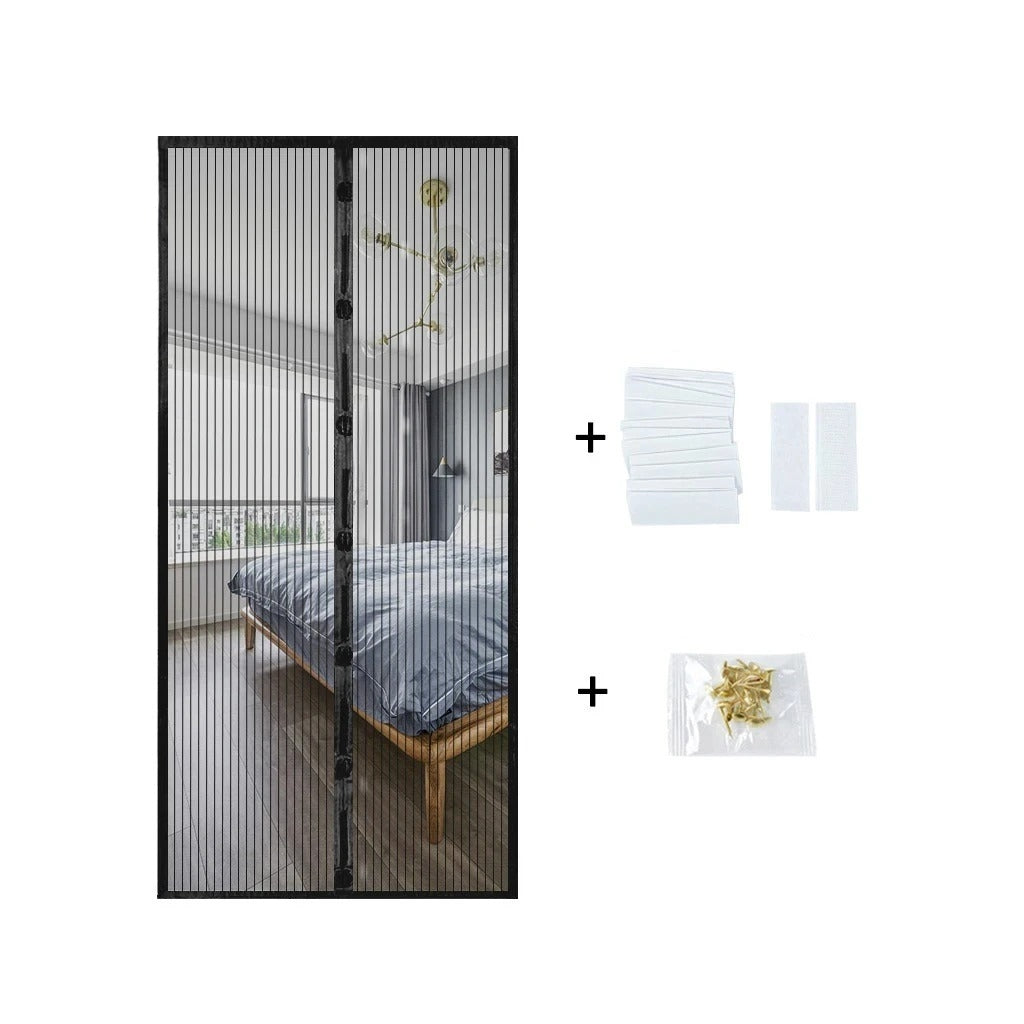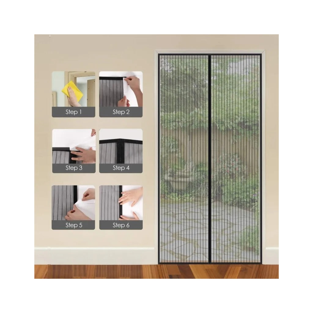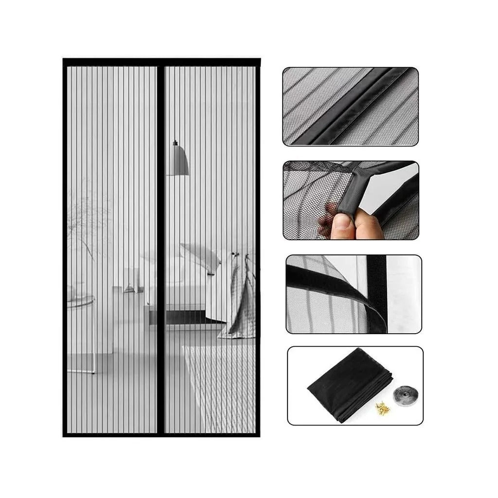 Cortina Magnética Anti-Mosquitos para PortasMantenha a sua casa livre de insetos e permita a circulação de ar com esta prática cortina magnética anti-mosquitos. Perfeita para portas de entrada, varandas ou até caravanas, esta cortina fecha-se automaticamente graças aos seus ímanes, garantindo um ambiente tranquilo e sem incómodos.Características principais:Fecho automático magnético:Ímanes ao longo da cortina permitem que ela se feche rapidamente após ser atravessada.Barreira eficaz contra insetos:Protege a sua casa de moscas, mosquitos e outros insetos, mantendo o ar fresco a circular.Instalação fácil:Inclui fita adesiva e tachas para uma fixação firme, sem necessidade de ferramentas.Material durável:Malha fina de alta qualidade, resistente ao uso diário e ao desgaste.Design prático e estético:Combina funcionalidade e elegância, adaptando-se a qualquer decoração.Especificações técnicas:Material: Malha de poliéster resistenteDimensões: Compatível com portas de até 210 cm de altura e 100 cm de larguraCor: PretoSistema de fecho: MagnéticoFácil de lavar e reutilizar