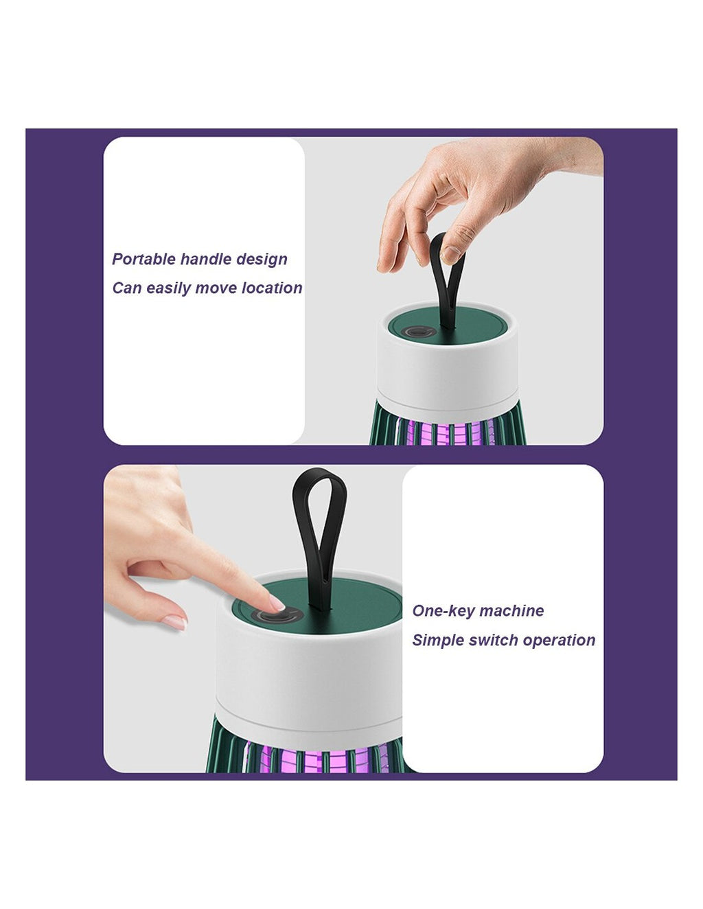 Lâmpada Anti-Mosquitos Portátil com Luz UVDesfrute de noites tranquilas e livres de mosquitos com esta lâmpada anti-mosquitos portátil, equipada com luz UV para atrair e eliminar insetos de forma eficaz. Ideal para uso em interiores ou exteriores, garante um ambiente mais confortável e protegido.Características PrincipaisTecnologia de Luz UV:Atrai mosquitos e outros insetos voadores para uma eliminação eficiente e segura.Design Portátil:Leve e fácil de transportar, perfeito para usar em qualquer divisão ou durante atividades ao ar livre.Segurança e Silêncio:Não utiliza produtos químicos nem emite ruídos, sendo segura para crianças e animais de estimação.Fácil de Limpar:Bandeja removível para recolha de insetos, facilitando a limpeza e manutenção.Autonomia Prolongada:Funciona com cabo USB, podendo ser conectada a power banks, computadores ou tomadas.Especificações TécnicasMaterial:Plástico ABS durável.Fonte de Alimentação:Cabo USB (incluído).Área de Cobertura:Até 30 m².Dimensões:Compacta e leve para transporte.Cor:Verde e branco.Modo de Funcionamento:Silencioso e ecológico.
