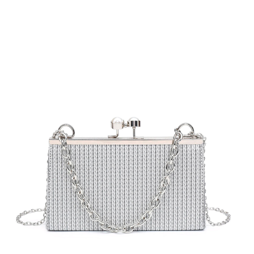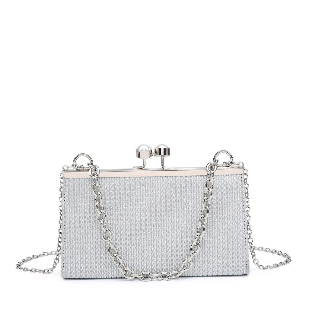 Bolsa de festa com pega em corrente e pérolas no fecho Bags. Dispõe de alça em corrente.