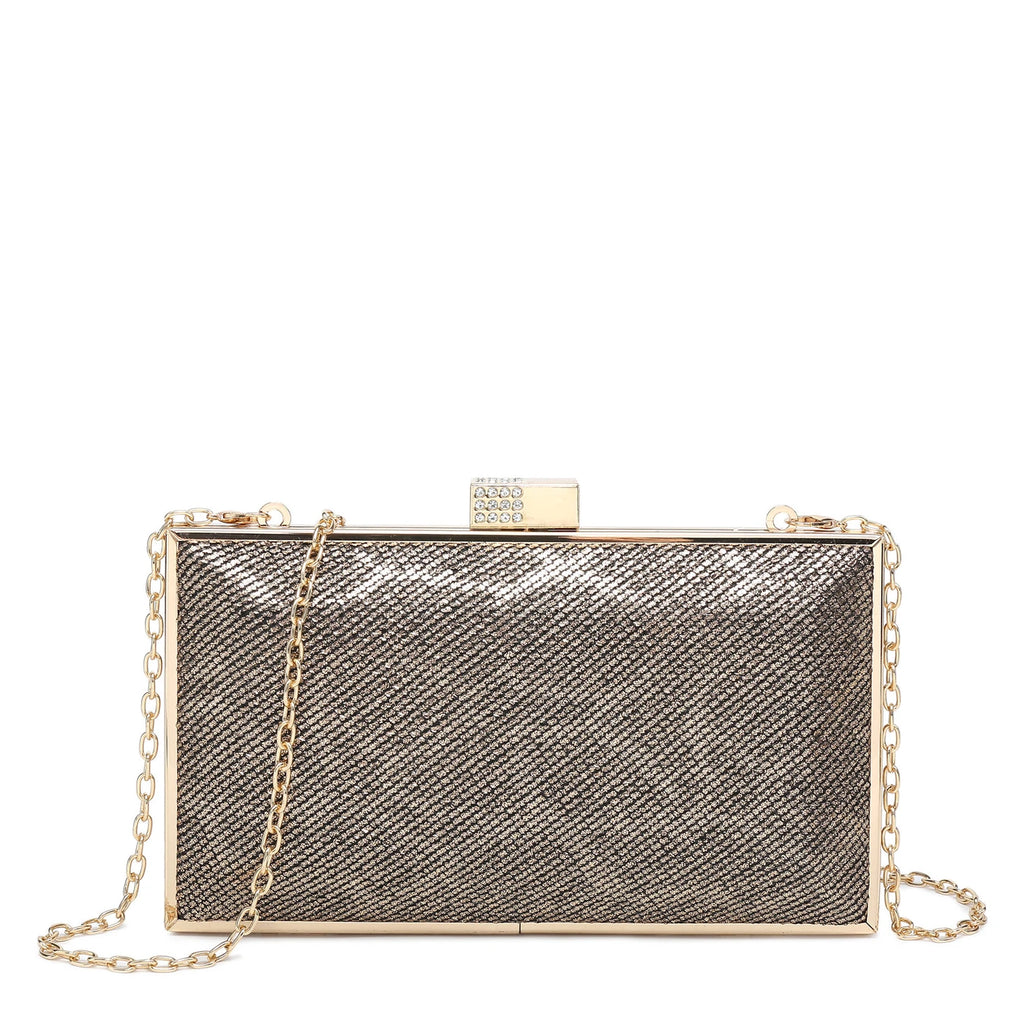 Pochete com textura brilhante Bags. Com tiracolo em corrente. Dimensões cm: 20x12x2 (CxAxL)