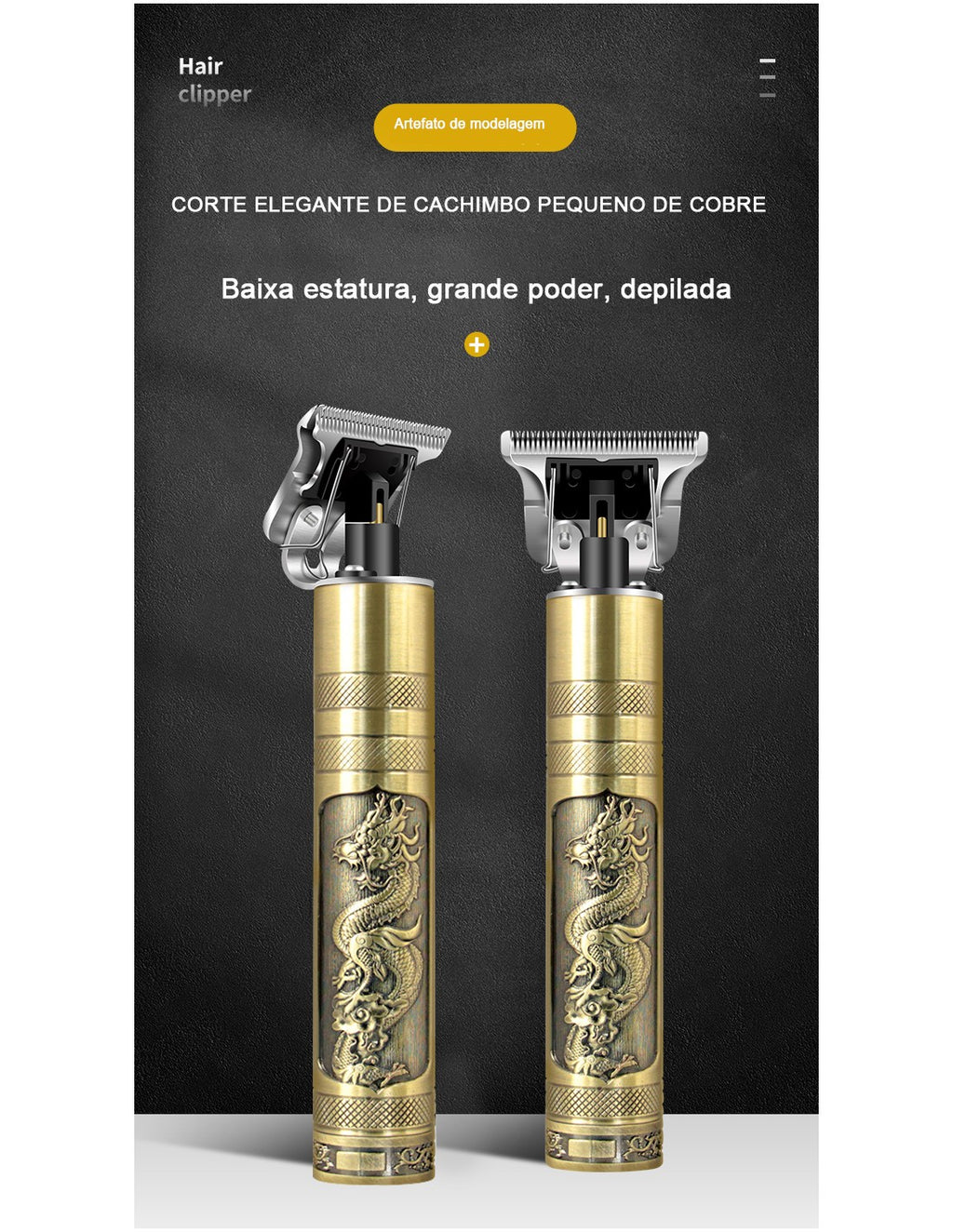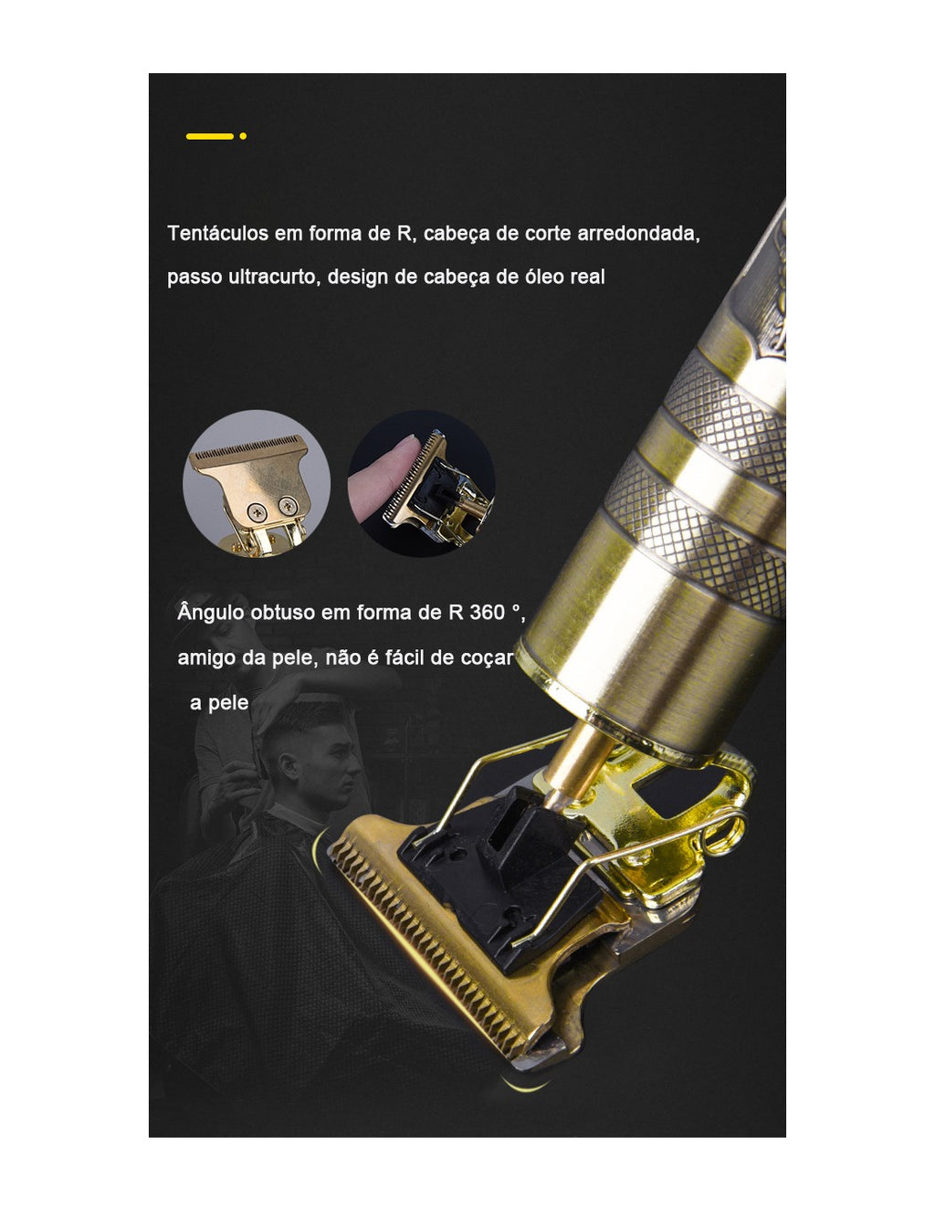 Máquina de Corte de Cabelo Profissional Hair Clipper QA-T568 – Precisão e Estilo Sob MedidaEleve o seu cuidado pessoal com a Máquina de Corte de Cabelo Profissional QA-T568. Ideal para barbearias ou uso doméstico, este clipper combina um design sofisticado com funcionalidade avançada, proporcionando cortes precisos e confortáveis. O seu acabamento dourado com detalhes gravados em relevo confere-lhe um toque de elegância e exclusividade.Características Principais:Lâmina T-Profissional:Ideal para cortes precisos, delineamentos e acabamentos perfeitos.Motor Potente e Silencioso:Garante alta performance com baixo nível de ruído.Design Ergonómico e Antiderrapante:Proporciona um manuseio confortável e seguro.Bateria Recarregável de Longa Duração:Perfeito para uso contínuo, com até 120 minutos de autonomia.Indicador LED:Informa o estado da bateria e o progresso de carregamento.Benefícios:Versatilidade:Adequado para cortes detalhados, graduações e modelagens criativas.Praticidade:Fácil de limpar e manter, com acessórios que facilitam o uso diário.Estilo Personalizado:Ferramenta indispensável para criar visuais únicos com precisão profissional.Especificações Técnicas:Modelo:QA-T568Fonte de Alimentação:Bateria de íon de lítio recarregável via USBAutonomia:Até 120 minutosMaterial da Lâmina:Aço inoxidável de alta qualidadeDimensões:Compacta e portátilAcessórios Incluídos:Pentes guia, cabo USB, escova de limpeza e óleo lubrificante