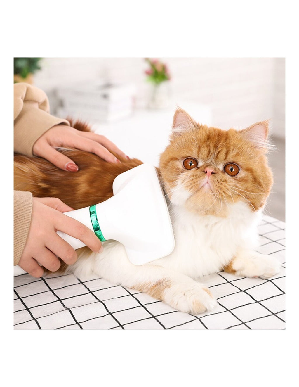 Escova Secadora para Animais de Estimação com 2 Níveis de VelocidadeGaranta o cuidado e conforto do seu animal de estimação com a escova secadora multifuncional. Ideal para remover pelos soltos enquanto seca suavemente, proporcionando um acabamento perfeito e saudável para cães e gatos.Características principais:2 níveis de velocidade:Escolha entre secagem rápida ou suave, adaptando-se às necessidades do seu animal.Escova de aço inoxidável:Facilita a remoção de pelos soltos e ajuda a desembaraçar suavemente.Função 2 em 1:Seca e penteia ao mesmo tempo, economizando tempo e esforço.Design ergonómico:Fácil de manusear e confortável para o animal.Silenciosa:Não assusta os animais, garantindo uma experiência tranquila.Especificações técnicas:Potência: 300WTensão: 220VNíveis de velocidade: Baixo e altoMaterial da escova: Aço inoxidávelComprimento do cabo: 1,5mCor: Branco com detalhes douradosBenefícios adicionais:Promove uma pelagem brilhante e saudável.Ajuda a reduzir a queda de pelos pela casa.Ideal para cães e gatos de todas as raças e tamanhos.