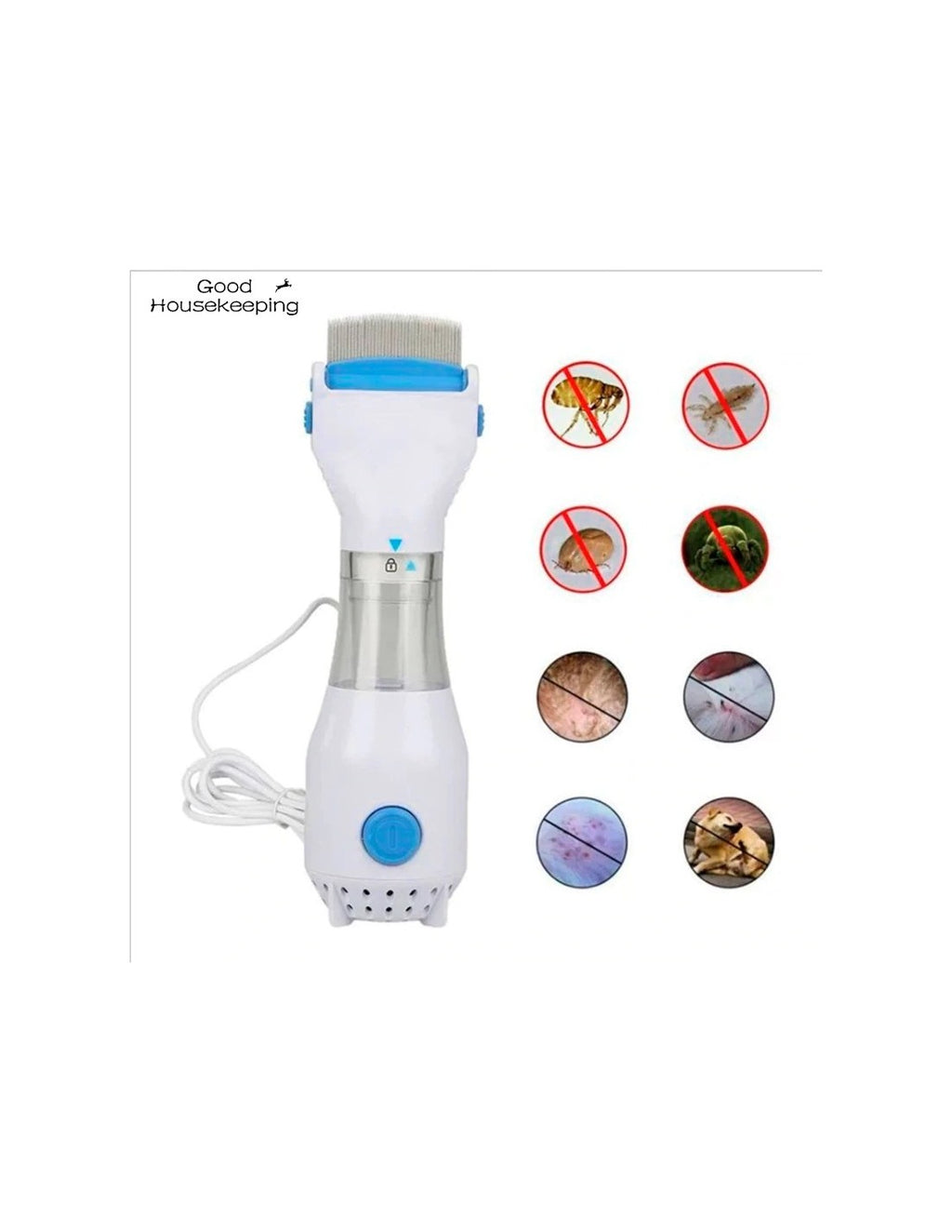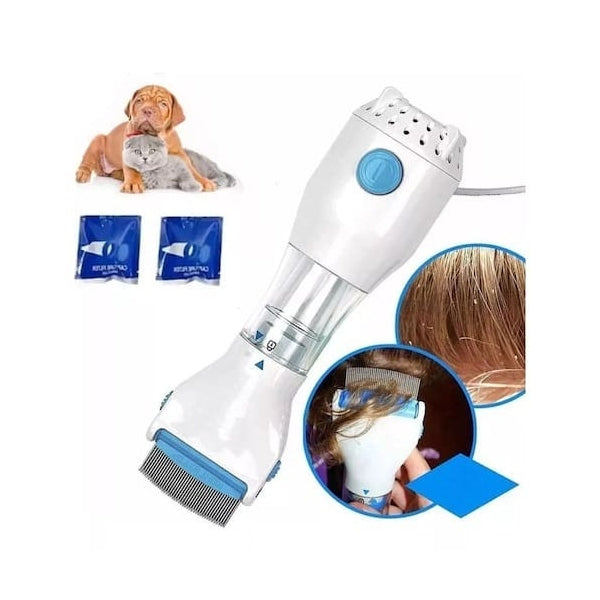 Removedor Elétrico de Pulgas para Animais de EstimaçãoGaranta o bem-estar do seu animal com o Removedor Elétrico de Pulgas, uma solução segura e eficaz para eliminar pulgas e outros parasitas de forma prática e sem produtos químicos.Características principais:Tecnologia de aspiração:Remove pulgas e ovos diretamente para o recipiente coletor.Pente de aço inoxidável:Desliza suavemente pelo pelo do animal, garantindo conforto.Design ergonómico:Leve e fácil de manusear, ideal para sessões de cuidados regulares.Fácil de limpar:Recipiente coletor removível para descarte rápido e higiénico.Seguro e silencioso:Perfeito para animais sensíveis a ruídos.Especificações técnicas:Alimentação: Elétrico (220V).Material: Plástico ABS e aço inoxidável.Comprimento do cabo: 1,8 metros.Peso: 450 g.Dimensões: 20 x 8 cm.