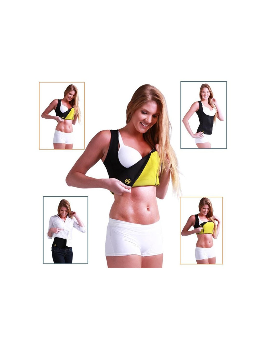 Colete Modelador com Efeito SaunaEste colete modelador é a solução perfeita para quem deseja otimizar os treinos e intensificar o processo de queima de calorias. Desenvolvido com material de alta qualidade, proporciona um efeito sauna, ajudando a acelerar a sudação e a melhorar a silhueta de forma prática e confortável.Vantagens do Produto:Efeito Sauna:Aumenta a temperatura corporal, promovendo a sudação e eliminando toxinas.Redução de Medidas:Ajuda a modelar a silhueta e a tonificar a zona abdominal.Confortável e Discreto:Pode ser usado sob a roupa no dia-a-dia ou durante a prática de exercício físico.Melhoria da Postura:Oferece suporte à zona lombar, corrigindo a postura.Material de Alta Qualidade:Interior em neoprene para maximizar o efeito sauna e exterior em tecido macio.Características:Material:Neoprene e poliéster.Cor:Preto com interior amarelo.Tamanhos Disponíveis:S, M, L, XL, XXL (consulte a tabela de medidas).Uso:Ideal para exercícios físicos ou uso diário.Inclui:1 x Colete Modelador com Efeito Sauna