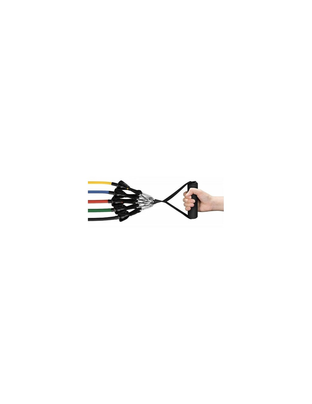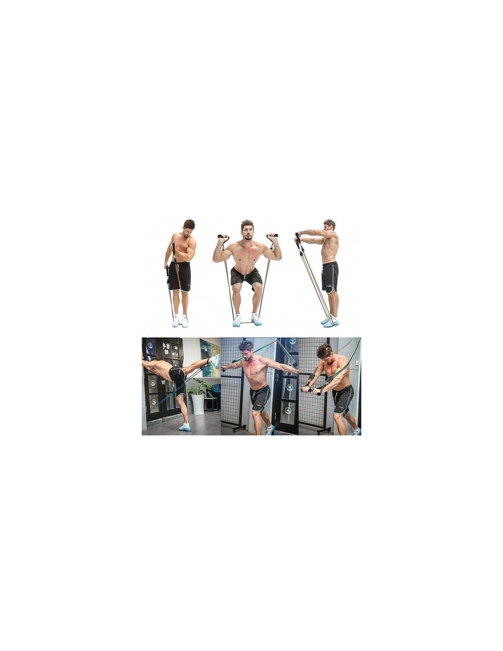 Conjunto de Bandas de Resistência – Treino Completo em Casa ou no GinásioO Conjunto de Bandas de Resistência é o equipamento perfeito para quem deseja treinar de forma versátil e eficiente, sem a necessidade de máquinas pesadas. Ideal para exercícios de força, tonificação e reabilitação muscular.Características principais:Variedade de Intensidades: Inclui bandas com diferentes níveis de resistência, permitindo ajustar o treino conforme as tuas necessidades.Treino Versátil: Perfeito para trabalhar diferentes grupos musculares, como pernas, braços, costas e abdominais.Acessórios Incluídos: Com alças ergonómicas, fitas para tornozelo e âncora para porta, este conjunto oferece múltiplas opções de treino.Portátil e Leve: Ideal para treinar em casa, no ginásio ou ao ar livre, podendo ser facilmente transportado na bolsa fornecida.Material Durável: Feito com látex de alta qualidade, garantindo durabilidade e segurança durante os exercícios.Especificações técnicas:Material: Látex naturalNíveis de resistência: 10lb, 20lb, 30lb, 40lb, 50lbAcessórios: 2 alças, 2 fitas de tornozelo, 1 âncora para porta, 1 bolsa de transporteComprimento das bandas: Aproximadamente 1,2 metros