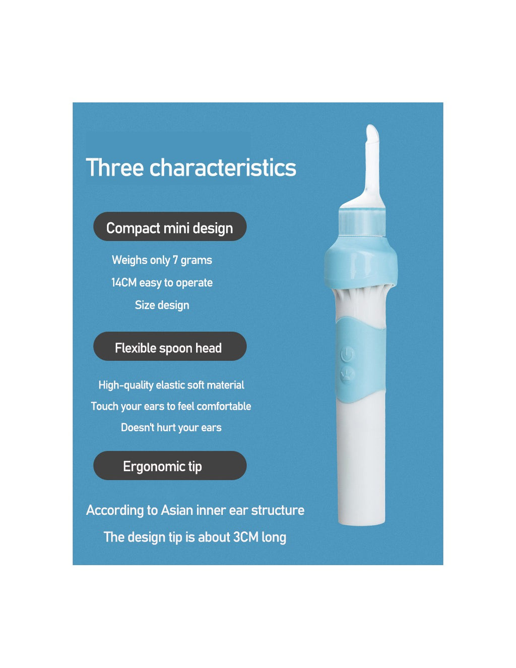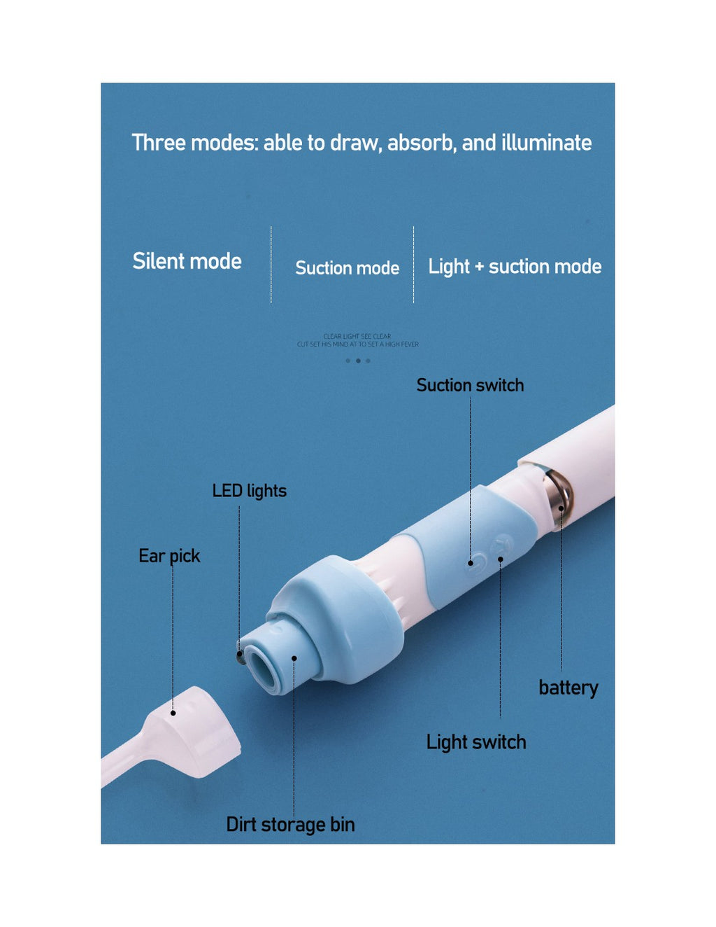 Limpa Ouvidos com LED e Sucção QA-ES2