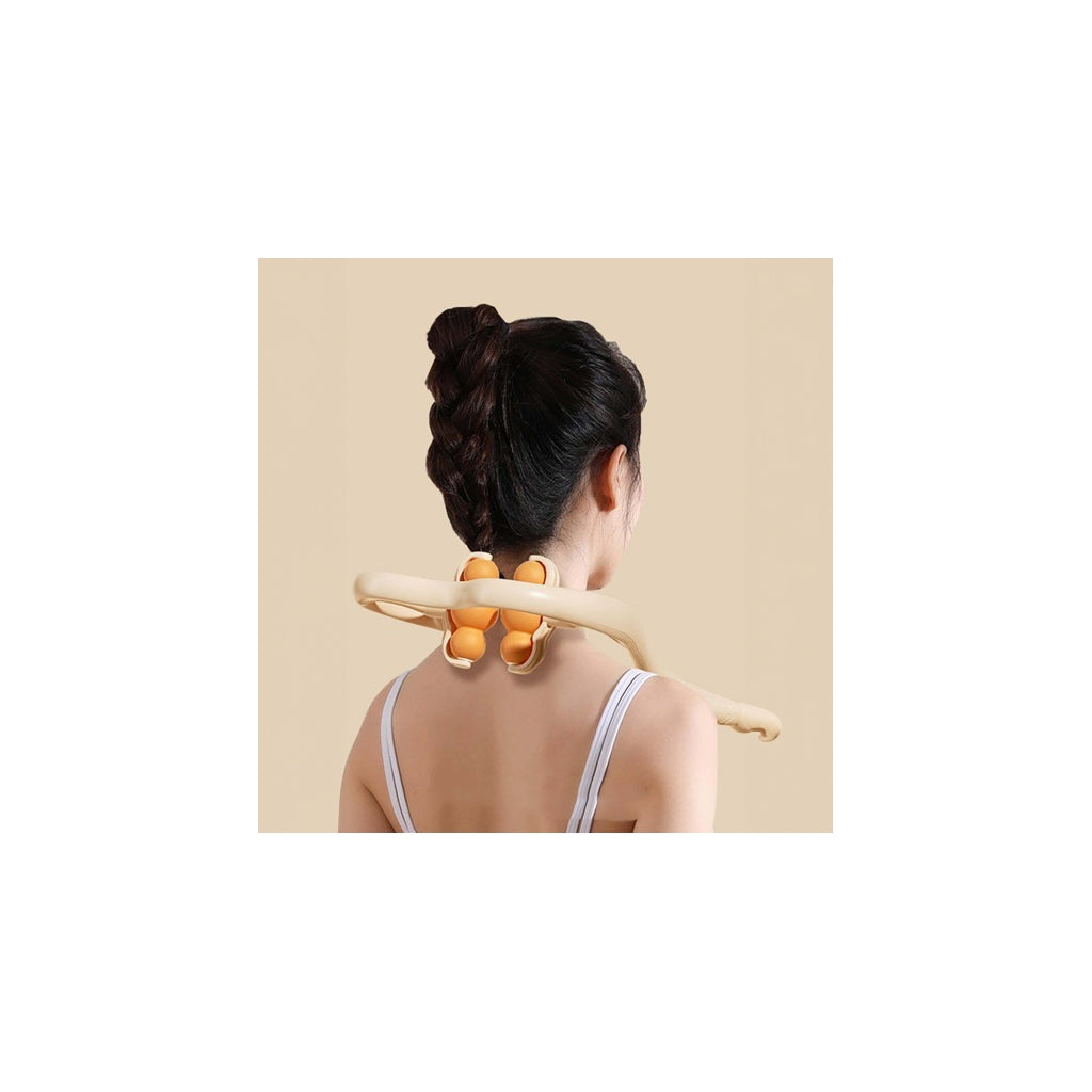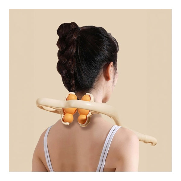 Massajador de Pescoço e Ombros Manual com RolosEste massajador manual é a solução perfeita para aliviar tensões musculares e melhorar a circulação na área do pescoço e ombros. Compacto e fácil de usar, permite realizar massagens profundas e relaxantes no conforto da sua casa. Ideal para quem procura alívio do stress após um dia intenso de trabalho ou atividades físicas.Características PrincipaisDesign Ergonómico: A estrutura em formato de U adapta-se perfeitamente ao contorno do pescoço, proporcionando conforto e eficácia.Rolos de Massagem Duplos: Possui rolos ajustáveis que alcançam os pontos de pressão, promovendo o relaxamento muscular.Material Resistente e Durável: Fabricado em plástico de alta qualidade, garante durabilidade e segurança durante o uso.Portátil e Leve: Fácil de transportar, permitindo que leve o seu massajador para qualquer lugar.Facilidade de Uso: Não necessita de pilhas nem eletricidade, oferecendo uma massagem manual eficiente e económica.Especificações TécnicasMaterial: Plástico ABS e PVC de alta resistênciaPeso: Aprox. 300gDimensões: 36 x 18 x 5 cmCor: Bege com detalhes em laranjaAdequado para: Pescoço, ombros, e outras áreas tensionadas do corpo