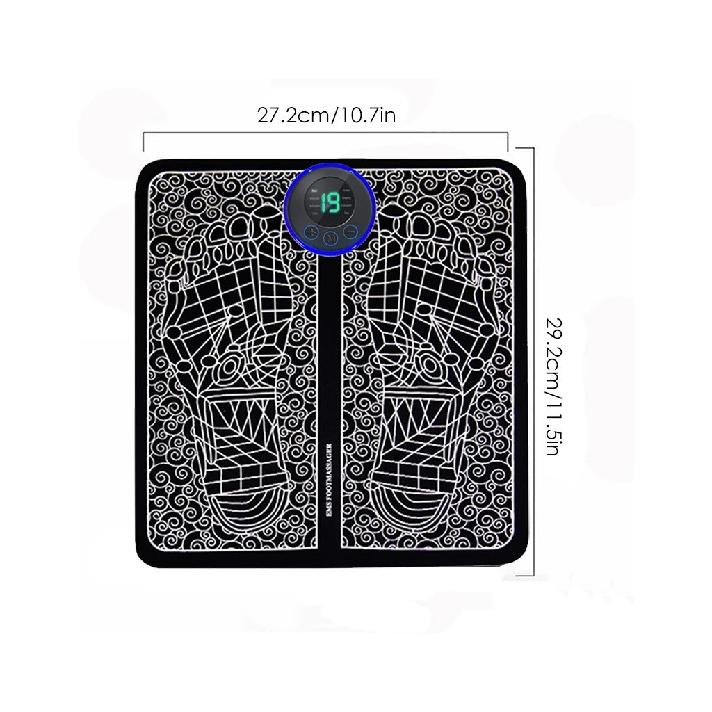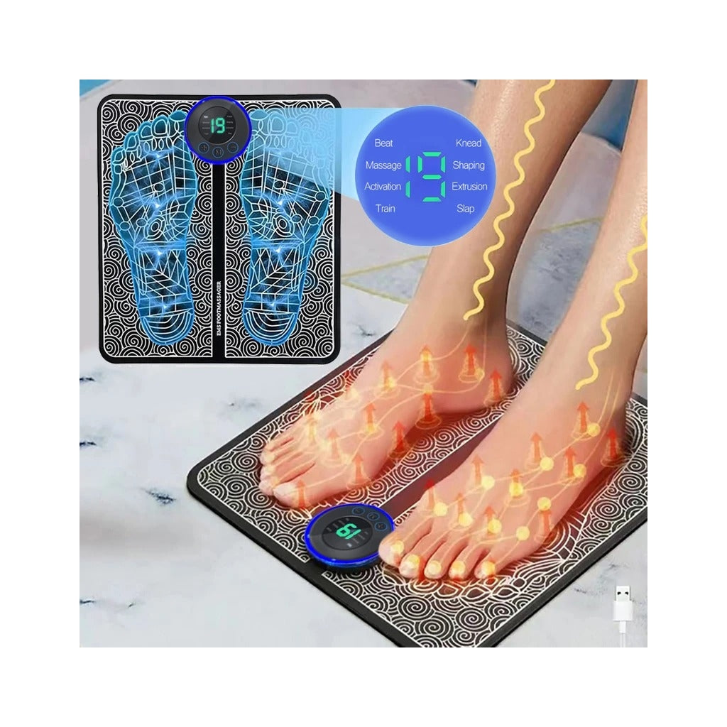 Tapete Eletrónico de Massagem para PésRelaxe e alivie o cansaço dos pés com o Tapete Eletrónico de Massagem. Este inovador dispositivo utiliza tecnologia EMS (Estimulação Elétrica dos Músculos) para promover a circulação sanguínea, aliviar a dor e proporcionar uma sensação de bem-estar após um dia cansativo.Características principais:Tecnologia EMS:Estimula os músculos e melhora a circulação.Design portátil:Leve e fácil de transportar, ideal para casa ou escritório.Modos ajustáveis:Vários níveis de intensidade e modos de massagem.Ecrã digital:Para fácil controlo e ajuste das funções.Material confortável:Superfície antiderrapante e suave ao toque.Especificações técnicas:Dimensões: 32 x 29 cm.Alimentação: USB recarregável.Modos: 6 modos com 19 níveis de intensidade.Material: PU + silicone.