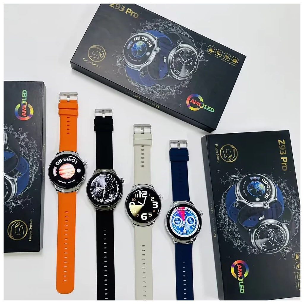 Smartwatch Z93 Pro com Ecrã AMOLED e Design EleganteDescubra o smartwatch Z93 Pro, um modelo com ecrã AMOLED de alta resolução e funcionalidades avançadas para o seu dia a dia. Com várias opções de braceletes coloridas, este relógio adapta-se ao seu estilo, oferecendo performance e versatilidade.Características:Ecrã AMOLED: Imagem nítida e cores vibrantes para uma experiência visual superior.Monitorização de saúde e fitness: Controlo de batimentos cardíacos, oxigénio no sangue, sono e muito mais.Notificações inteligentes: Receba chamadas, mensagens e alertas diretamente no pulso.Resistente à água (IP67): Ideal para utilização diária, mesmo em condições adversas.Braceletes substituíveis: Personalize o seu look com diferentes cores e materiais.Compatibilidade universal: Funciona com dispositivos Android e iOS.Funcionalidades:Controlo de SonoEstado do TempoAtividades Físicase muito maisO Z93 Pro combina tecnologia e estilo num só acessório, perfeito para quem procura um relógio funcional e moderno.