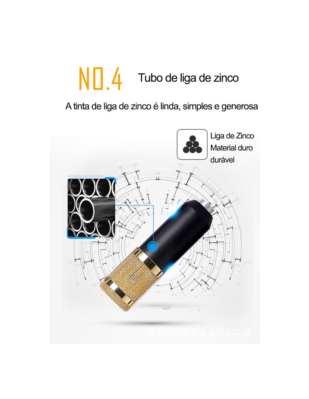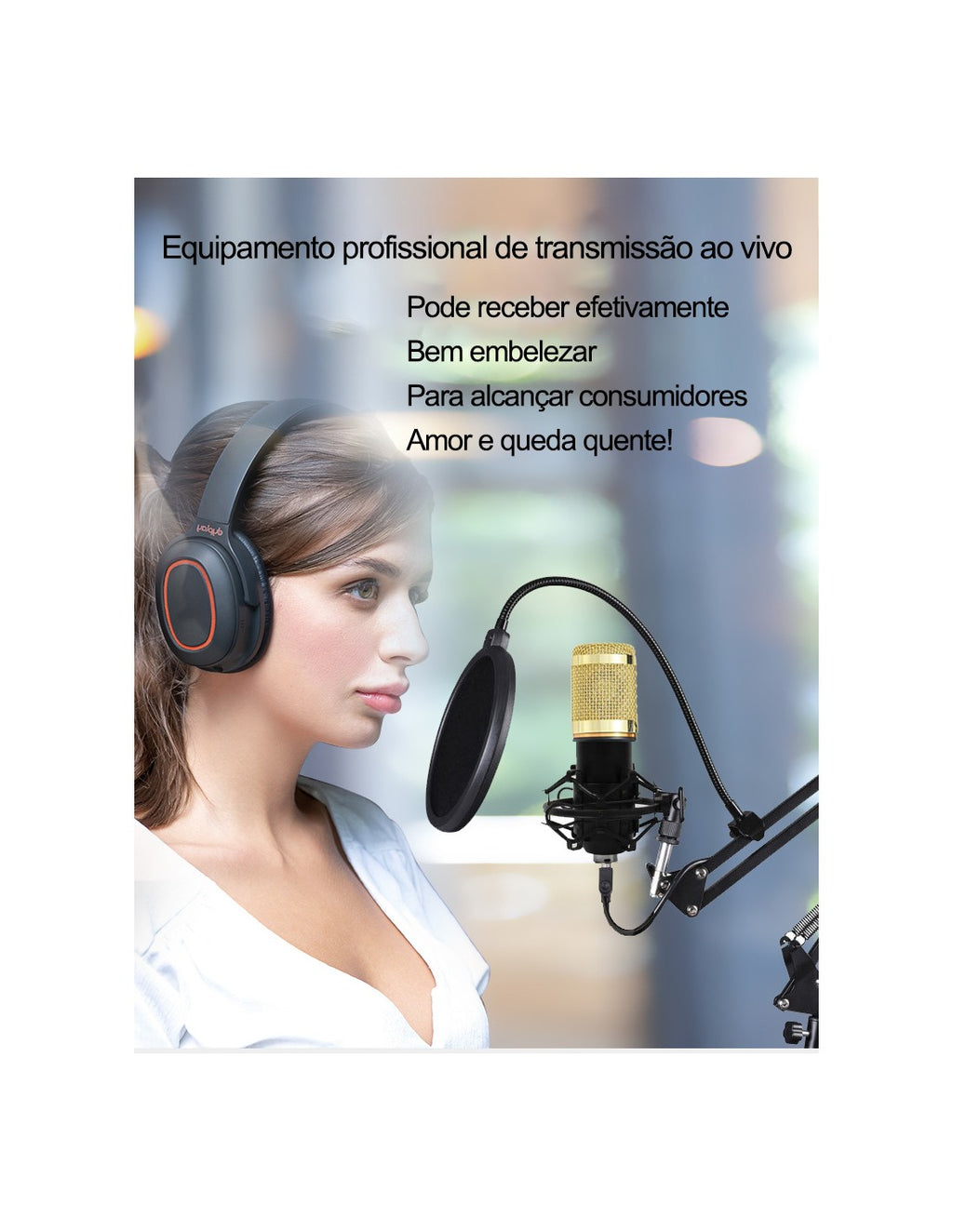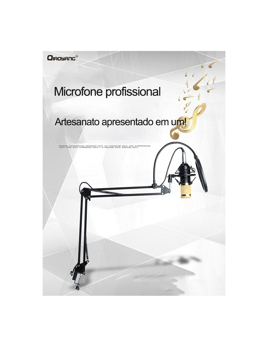 Microfone Condensador Profissional QA-T556 – Qualidade de Som ExcecionalEleve a qualidade das suas gravações com o Microfone Condensador Profissional QA-T556. Ideal para cantores, podcasters, gamers e profissionais de locução, este microfone oferece um som cristalino e uma experiência de gravação superior.Características Principais:Tecnologia Condensadora Unidirecional:Capta a voz com precisão, minimizando os ruídos de fundo.Suporte Ajustável e Braço Articulado:Facilita a posição ideal do microfone para uma gravação confortável.Filtro Pop Incluído:Elimina sons indesejados, como explosões de ar, para uma captação mais limpa.Conexão Profissional:Compatível com placas de som e computadores para uma fácil integração no seu setup.Benefícios:Qualidade de Som Superior:Ideal para gravações vocais, streaming e podcasts.Design Versátil:Perfeito para estúdios caseiros e profissionais.Fácil de Usar:Montagem rápida e ajustes intuitivos.Especificações Técnicas:Modelo:QA-T556Sensibilidade:-20dB ± 3dBResposta de Frequência:50Hz - 16kHzImpedância:≤2.2KΩConectividade:Porta USB e cabo XLR