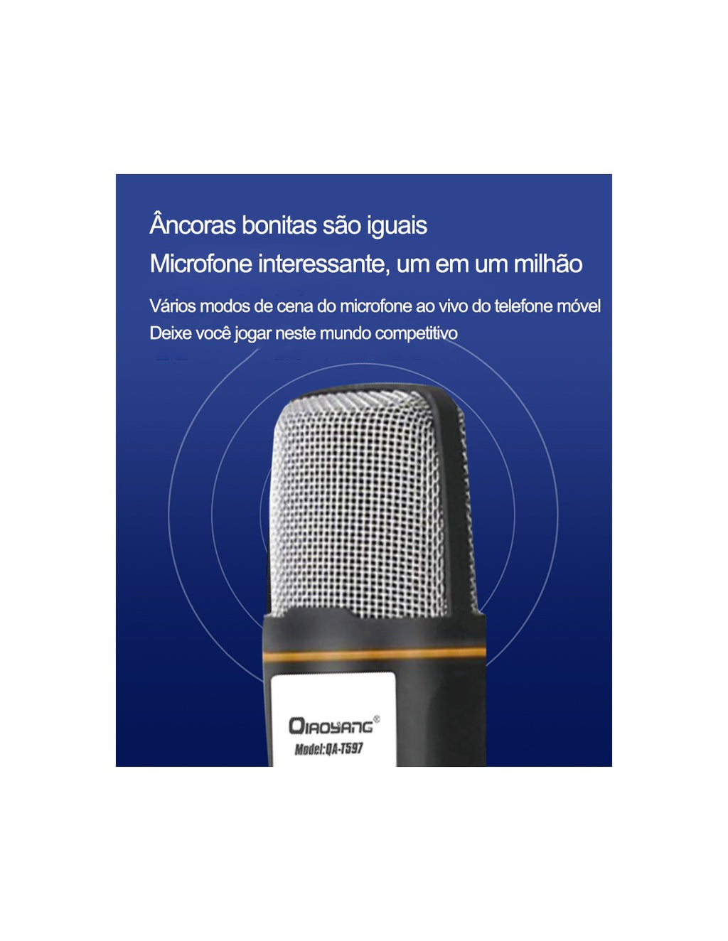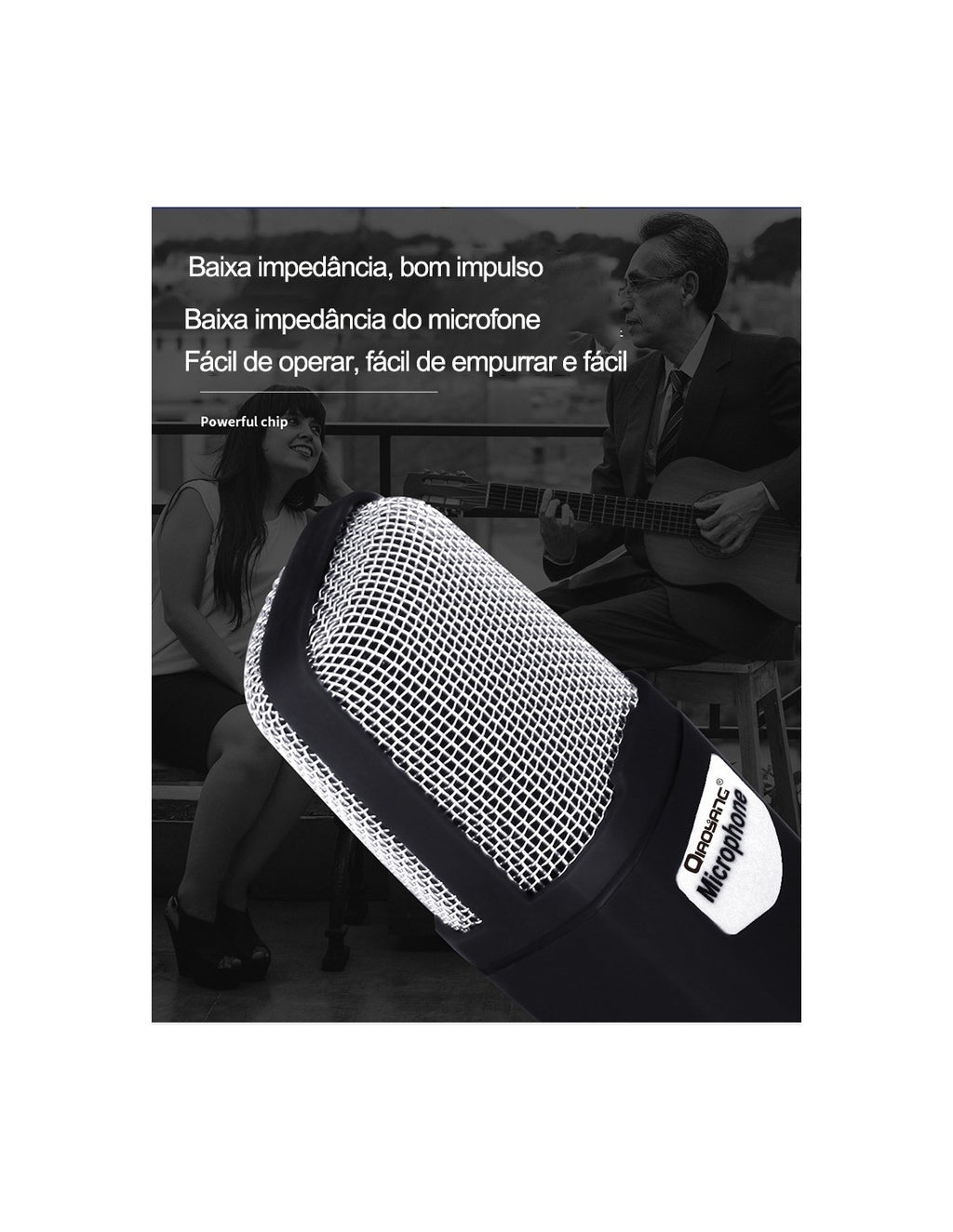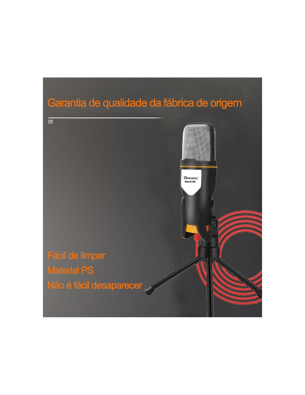 Microfone Condensador QA-T597 – Qualidade de Som Profissional para Gravações e TransmissõesO Microfone Condensador QA-T597 é a escolha ideal para criadores de conteúdo, podcasters, músicos e profissionais que procuram qualidade de som superior. Com design ergonómico e construção robusta, este microfone garante gravações claras e sem ruídos.Características Principais:Captação de Alta Sensibilidade:Excelente para capturar detalhes sonoros com precisão.Tripé Ajustável:Oferece estabilidade e ângulos personalizados durante o uso.Cabo de Conexão de Alta Qualidade:Minimiza interferências e proporciona som limpo.Design Compacto e Portátil:Fácil de transportar e ideal para uso em estúdios ou viagens.Compatibilidade Universal:Funciona com PCs, portáteis e equipamentos de áudio profissionais.Benefícios:Som Profissional:Ideal para gravações vocais, instrumentos ou chamadas em conferência.Fácil Configuração:Plug and play, sem necessidade de instalação de drivers.Durabilidade:Construção resistente para uso prolongado e constante.Especificações Técnicas:Modelo:QA-T597Resposta de Frequência:30Hz-16kHzImpedância:2.2kΩSensibilidade:-38dB ± 3dBConector:3.5mm com cabo de 2 metros