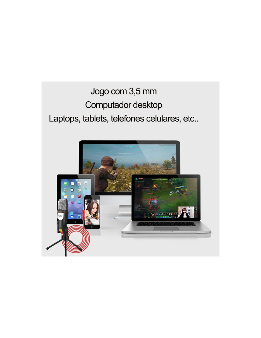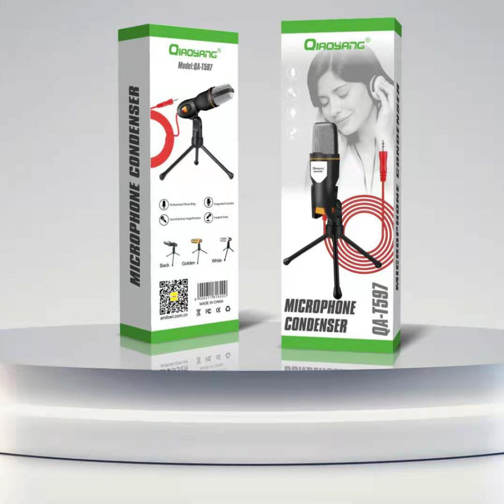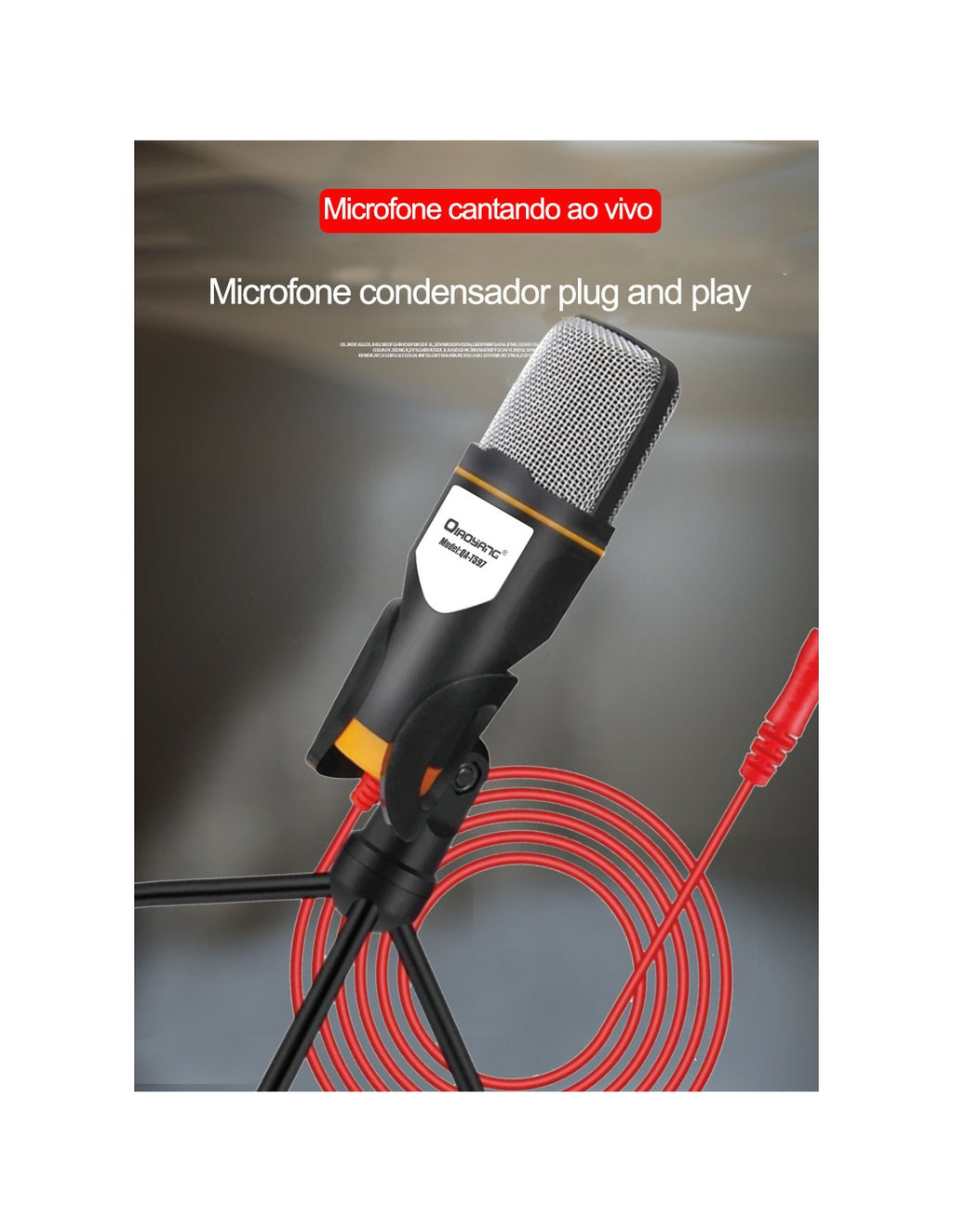 Microfone Condensador QA-T597 – Qualidade de Som Profissional para Gravações e TransmissõesO Microfone Condensador QA-T597 é a escolha ideal para criadores de conteúdo, podcasters, músicos e profissionais que procuram qualidade de som superior. Com design ergonómico e construção robusta, este microfone garante gravações claras e sem ruídos.Características Principais:Captação de Alta Sensibilidade:Excelente para capturar detalhes sonoros com precisão.Tripé Ajustável:Oferece estabilidade e ângulos personalizados durante o uso.Cabo de Conexão de Alta Qualidade:Minimiza interferências e proporciona som limpo.Design Compacto e Portátil:Fácil de transportar e ideal para uso em estúdios ou viagens.Compatibilidade Universal:Funciona com PCs, portáteis e equipamentos de áudio profissionais.Benefícios:Som Profissional:Ideal para gravações vocais, instrumentos ou chamadas em conferência.Fácil Configuração:Plug and play, sem necessidade de instalação de drivers.Durabilidade:Construção resistente para uso prolongado e constante.Especificações Técnicas:Modelo:QA-T597Resposta de Frequência:30Hz-16kHzImpedância:2.2kΩSensibilidade:-38dB ± 3dBConector:3.5mm com cabo de 2 metros